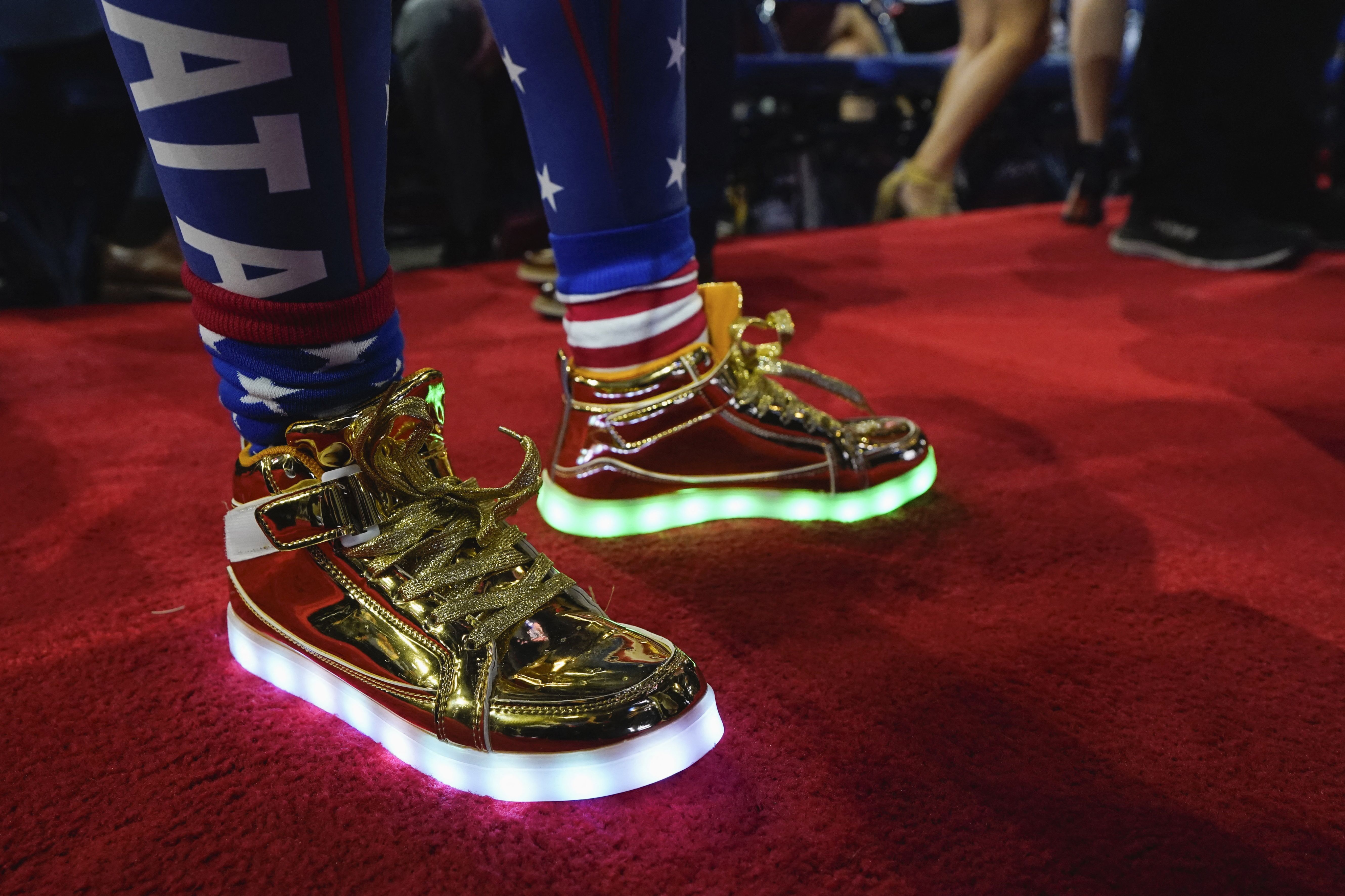 An attendee wears an illuminated pair of shoes on Day 1 of the RNC in Milwaukee on July 15, 2024. (Photo by Elizabeth Frantz/Reuters)