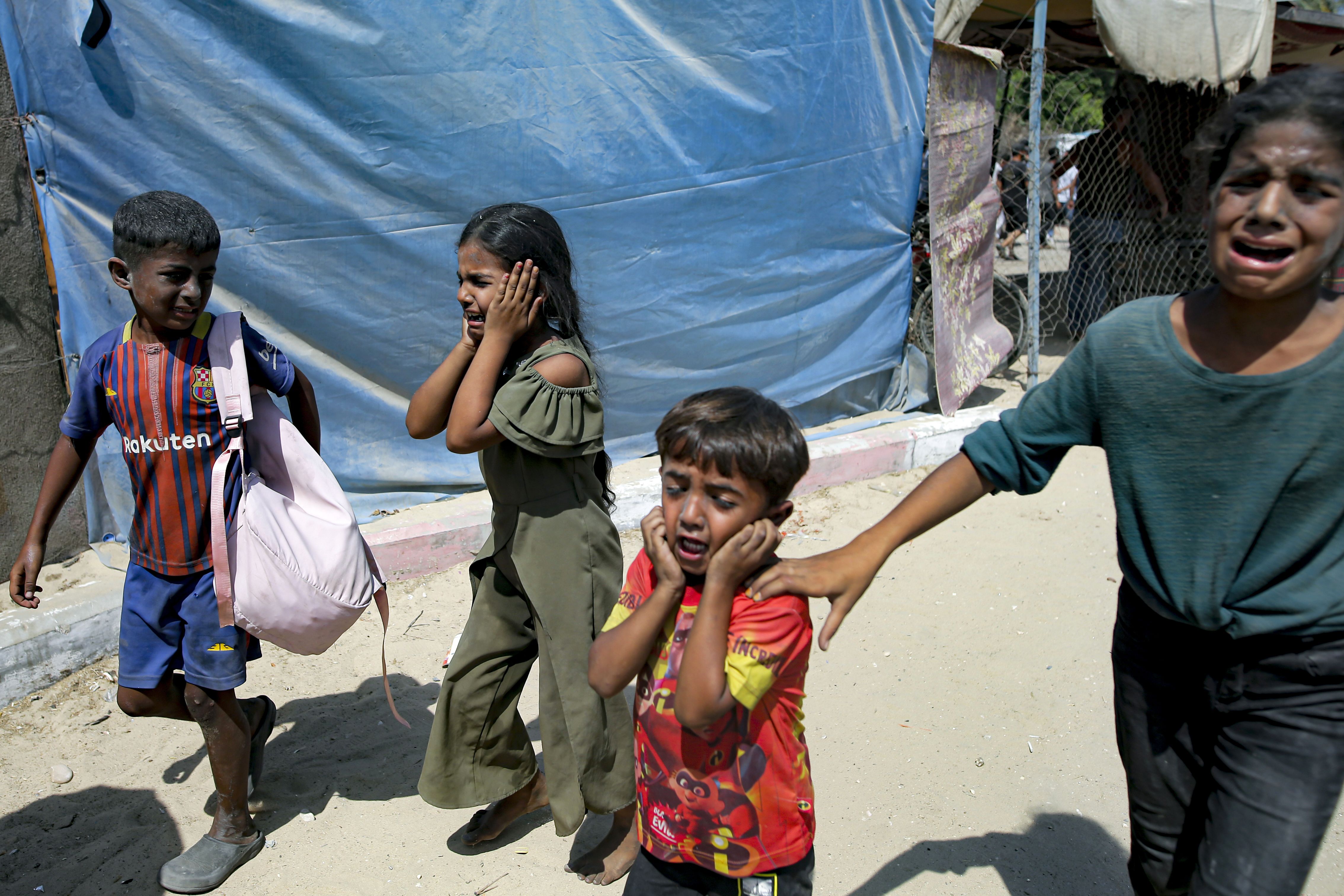 Palestinian children are evacuated from a site hit by an Israeli bombardment on Khan Younis, southern Gaza Strip, Saturday, July 13, 2024. Israel said it targeted Hamas' shadowy military commander in a massive strike Saturday in the crowded southern Gaza Strip that killed at least 71 people, according to local health officials. Hamas immediately rejected the claim that Mohammed Deif was targeted. (Photo by Jehad Alshrafi/AP Photo)