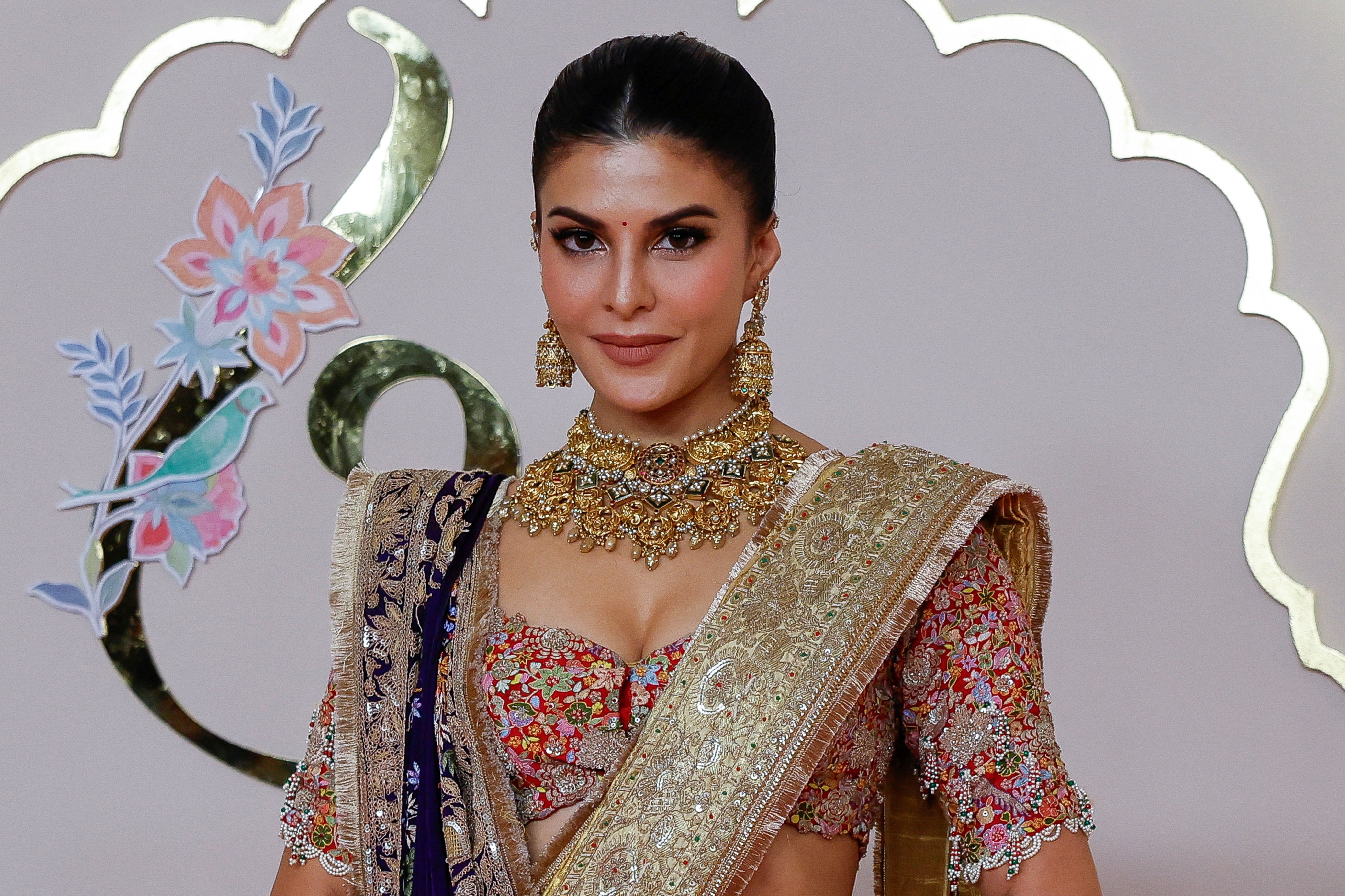 Sri Lankan actress and model Jacqueline Fernandez poses for pictures on the red carpet on the day of the wedding of Anant Ambani and Radhika Merchant in Mumbai, India, on July 12, 2024. (Photo by Francis Mascarenhas/Reuters)