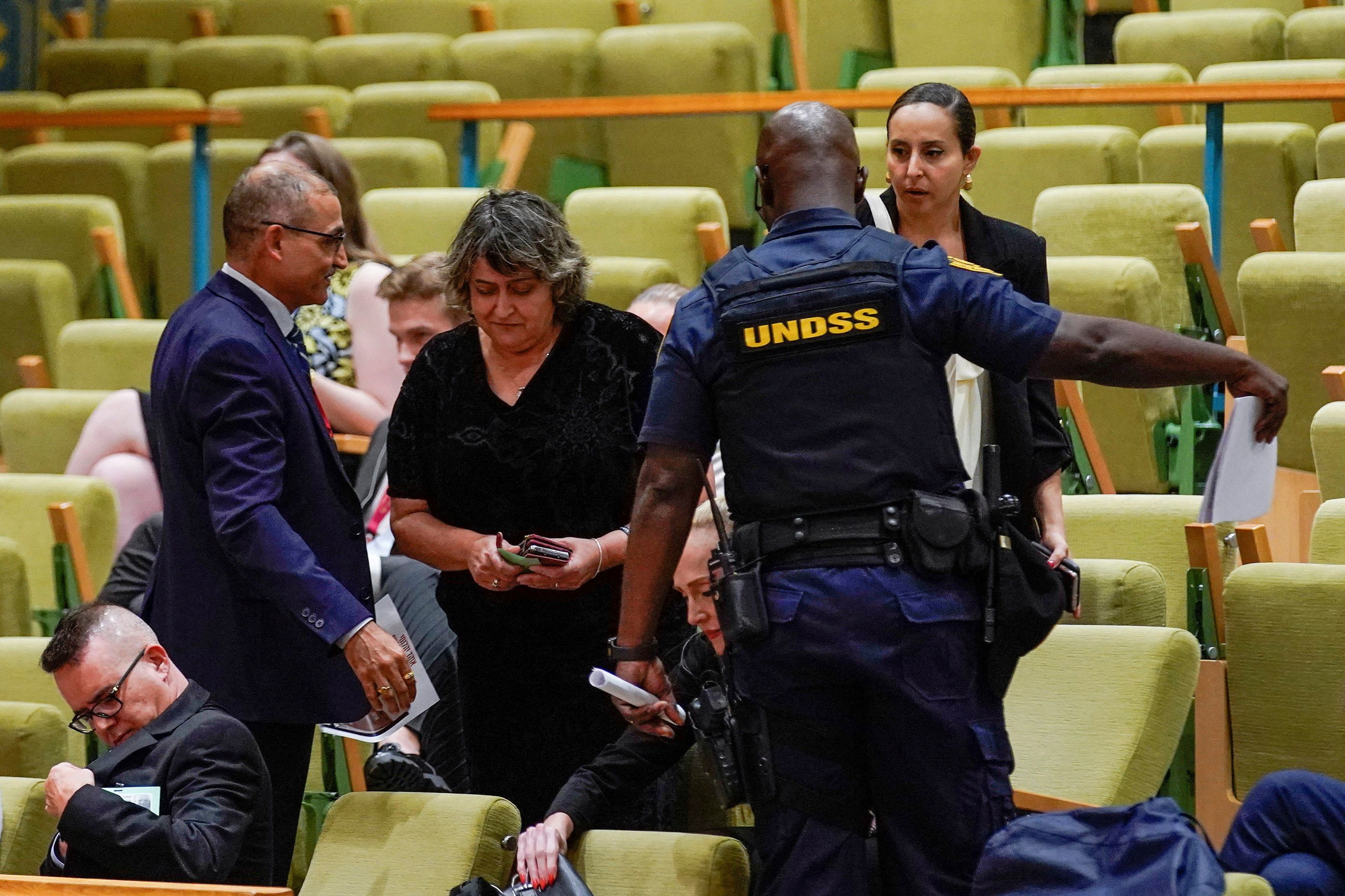 People protest for the release of the Israel citizens kidnapped by Hamas during a meeting of the United Nations Security Council at the United Nations Headquarters in New York City, U.S., July 17, 2024. (Photo by Eduardo Munoz/Reuters)