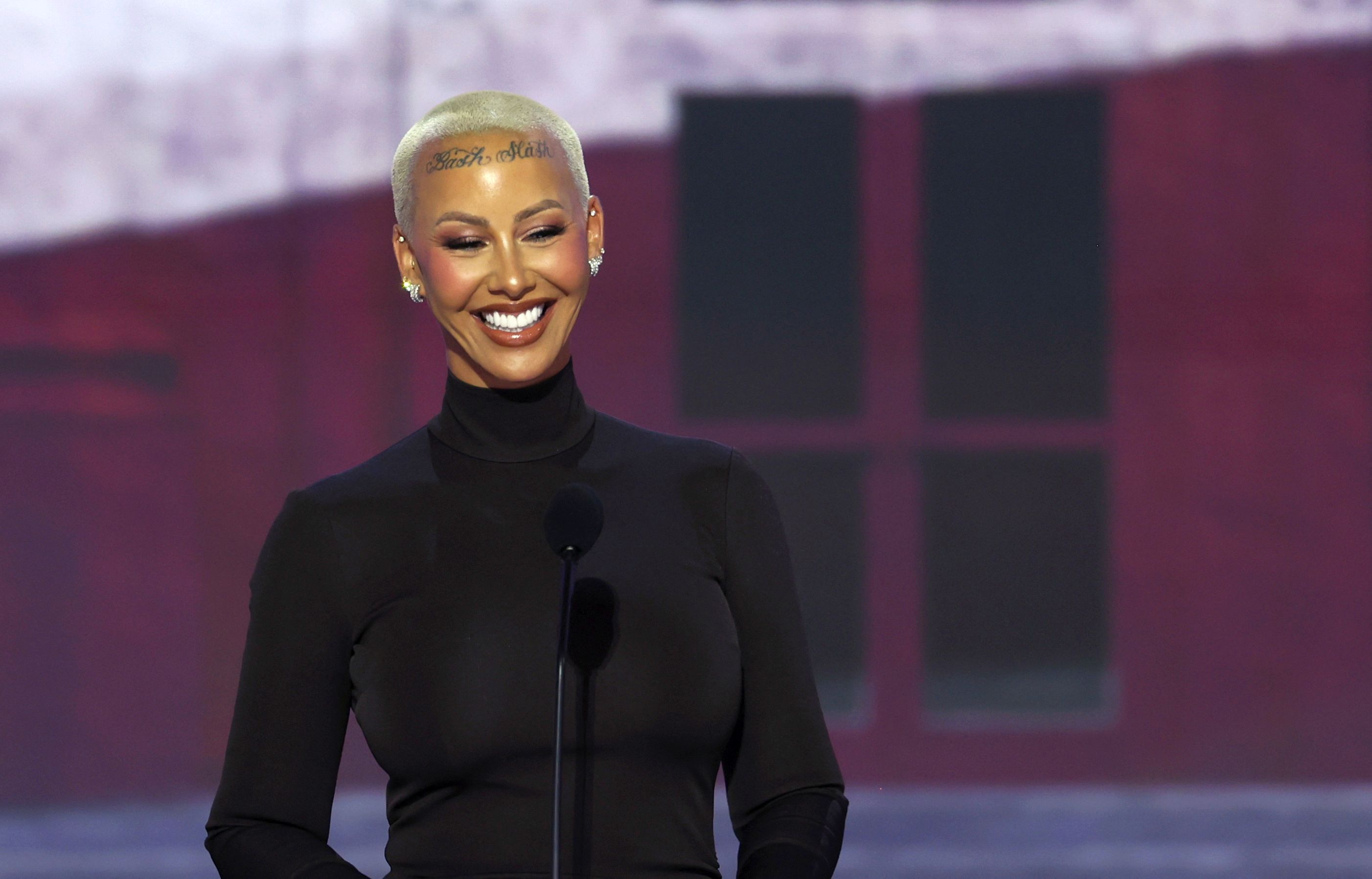 American model and rapper Amber Rose speaks during Day 1 of the Republican National Convention (RNC), at the Fiserv Forum in Milwaukee, Wisconsin on July 16, 2024. (Photo by Mike Segar/Reuters)