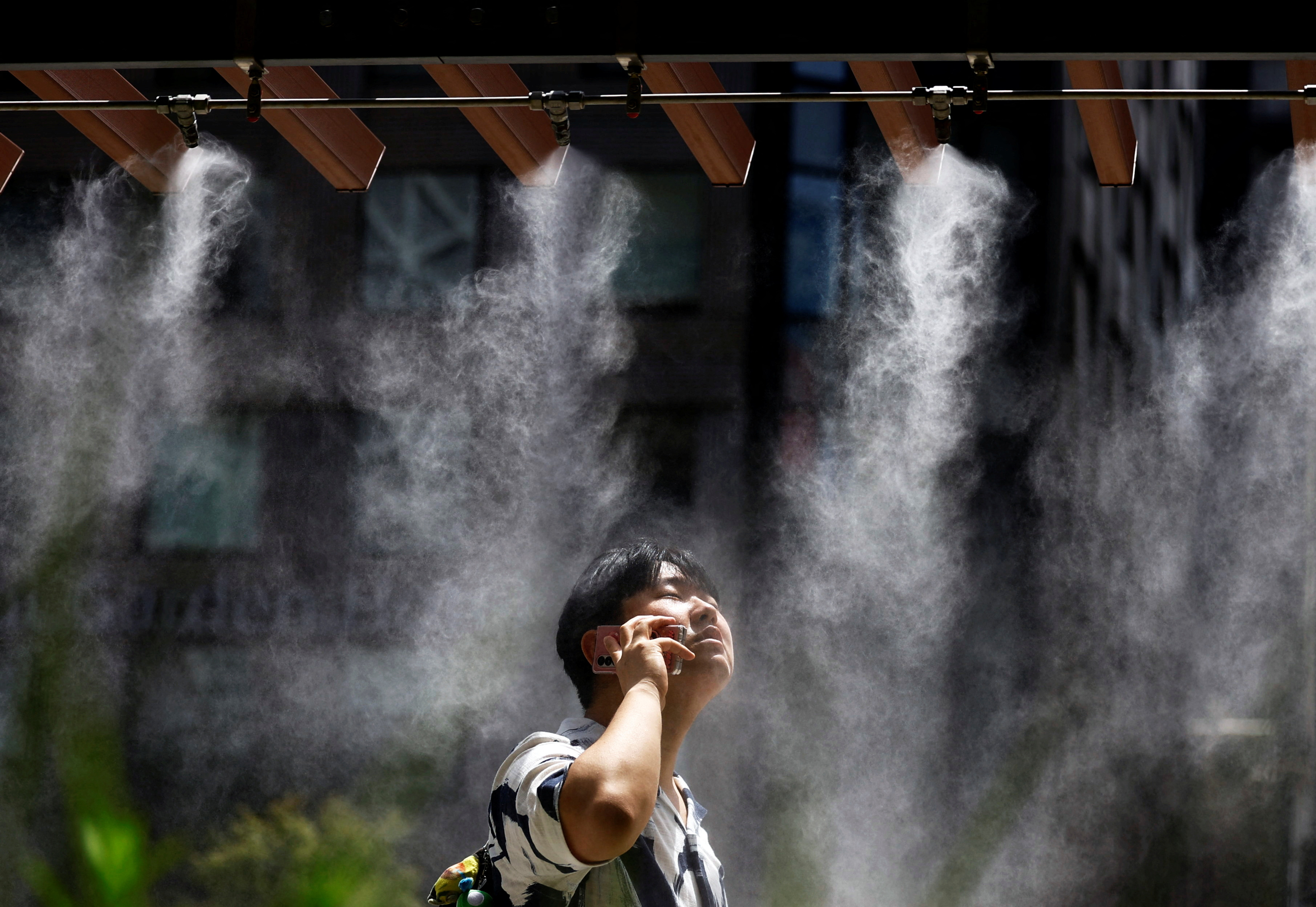 A man takes a break under a cooling mist as the Japanese government issued a heatstroke alert in Tokyo and other prefectures, in Tokyo, Japan on July 9, 2024. (Photo by Issei Kato/Reuters)