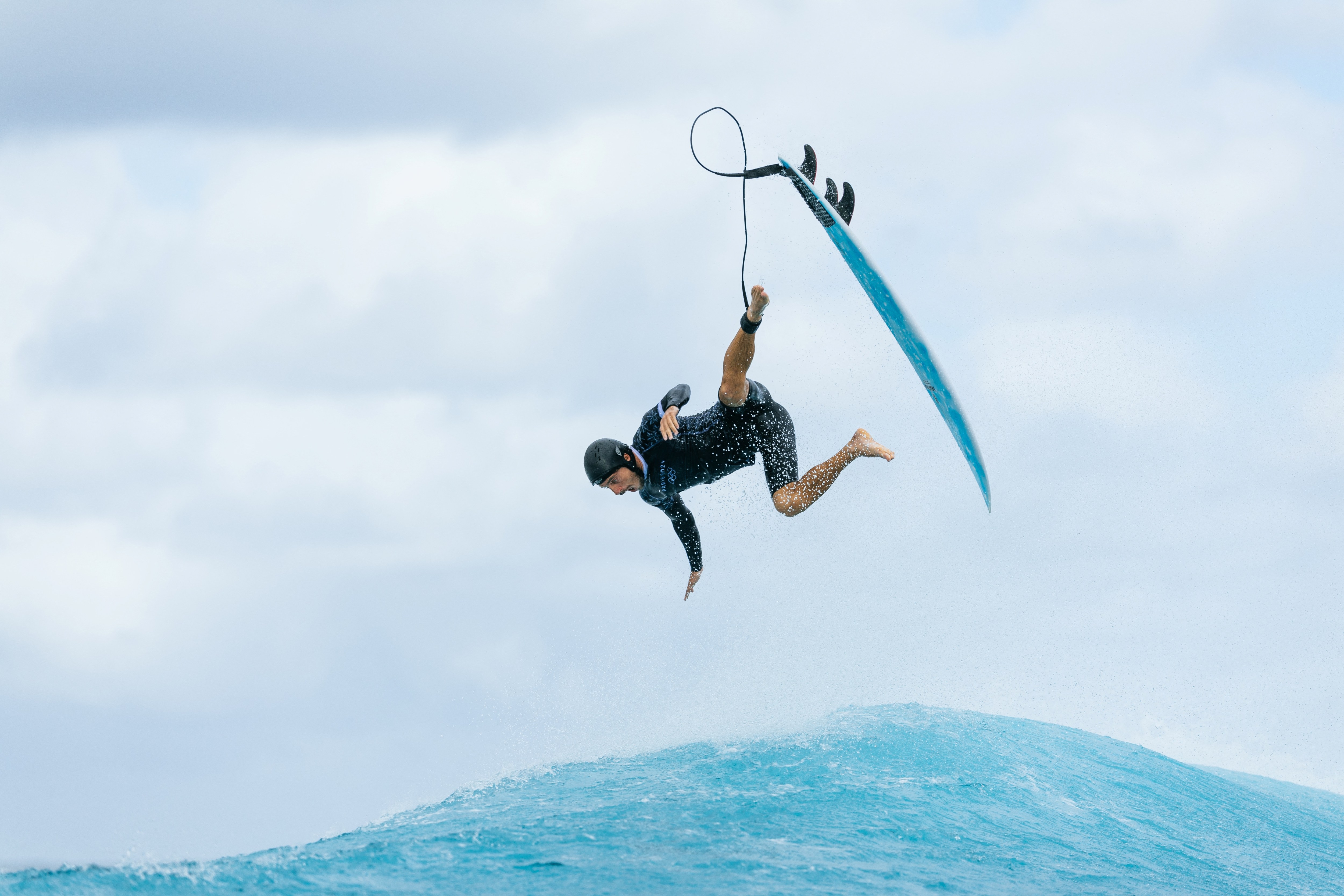 Peru's Alonso Correa takes part in a surfing training session in Teahupo'o, on the French Polynesian Island of Tahiti, on July 22, 2024, ahead of the Paris 2024 Olympic Games. (Photo by Ed Sloane/AFP Photo)