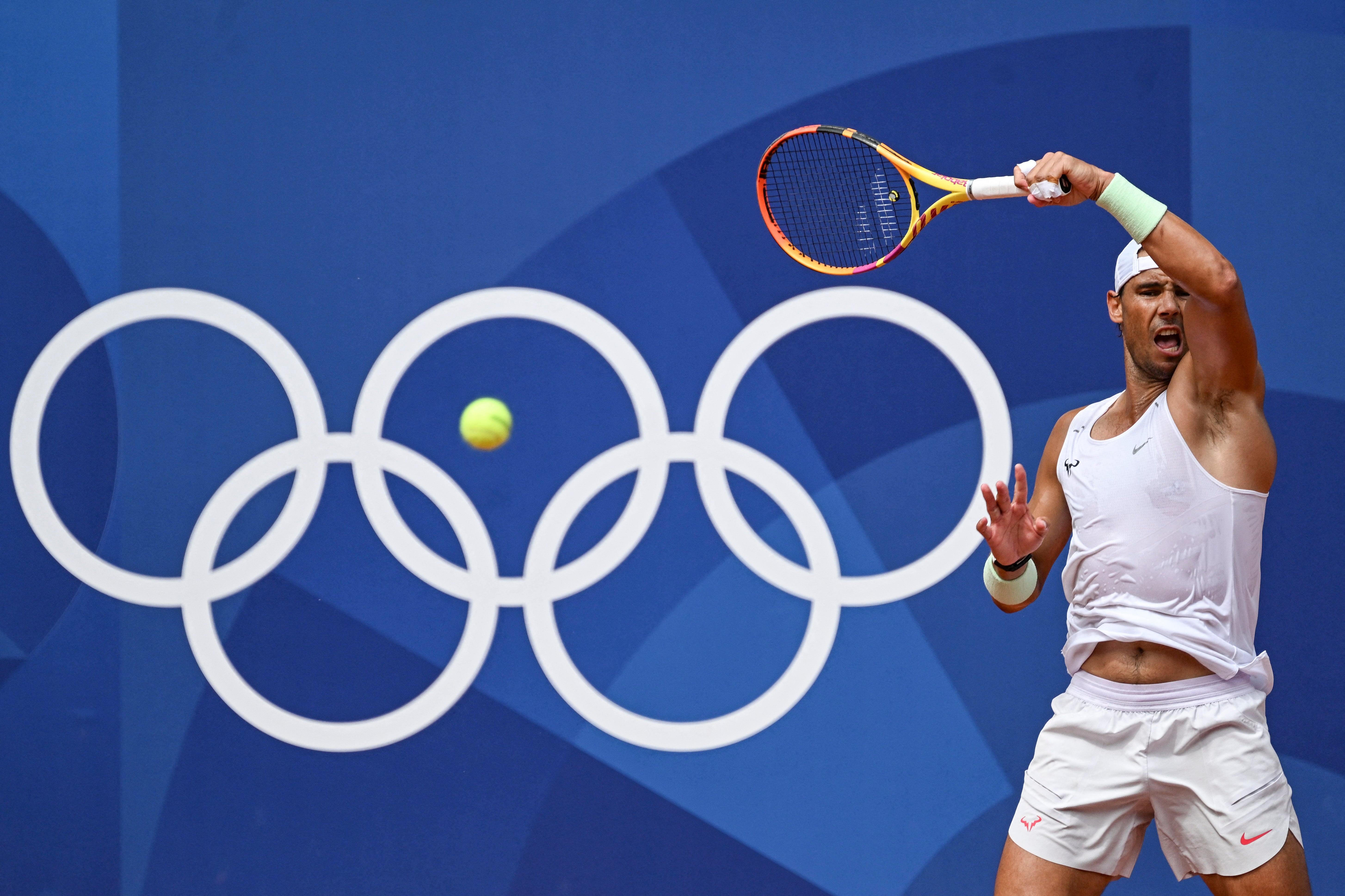 Spain's Rafael Nadal takes part in a training session at the Roland-Garros Stadium complex in Paris on July 23, 2024, ahead of Paris 2024 Olympic Games. (Photo by Patrícia de Melo Moreira/AFP Photo)