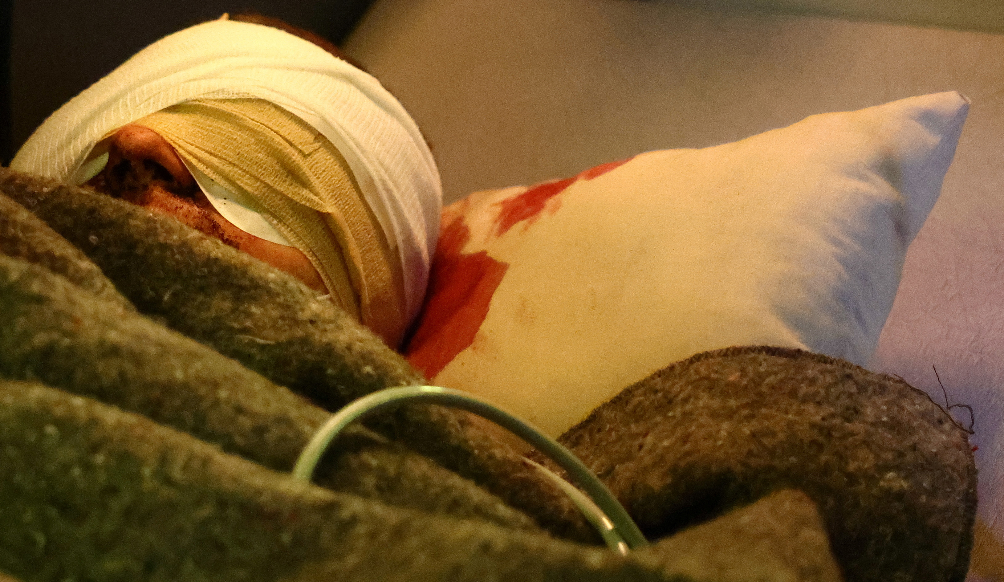 Volunteers with Hospitallers give medical support to Ukrainian servicemen who were injured in Bakhmut, amid Russia?s attack on Ukraine, during their evacuation in an intensive car unit bus between Bakhmut towards a hospital in Dnipro, Ukraine on April 11, 2023. (Photo by Kai Pfaffenbach/Reuters)