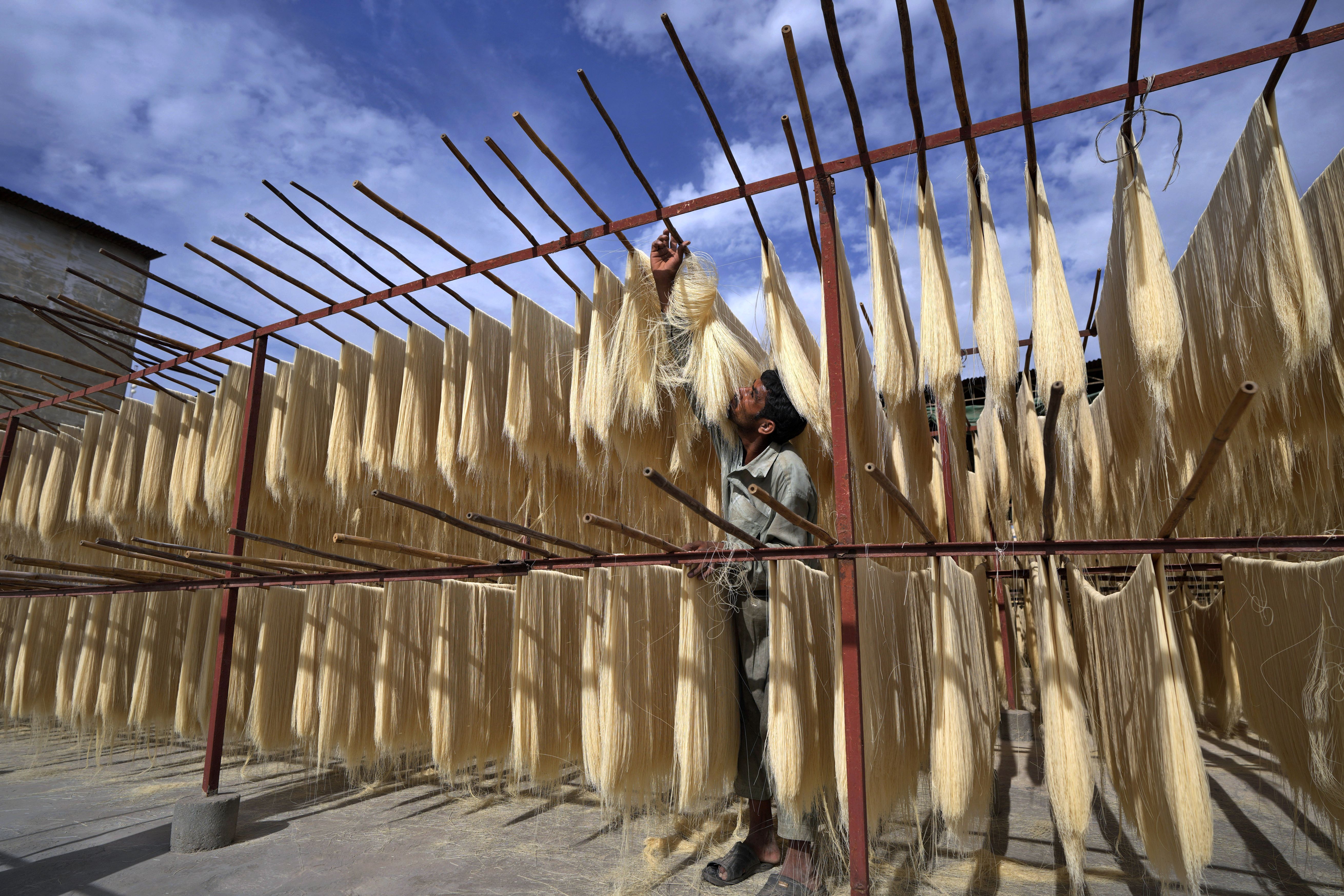 A worker prepares traditional vermicelli noodles, a favorite during the Muslim holy fasting month of Ramadan, at a factory, in Karachi, Pakistan, Monday, April 10, 2023. (Photo by Fareed Khan/AP Photo)