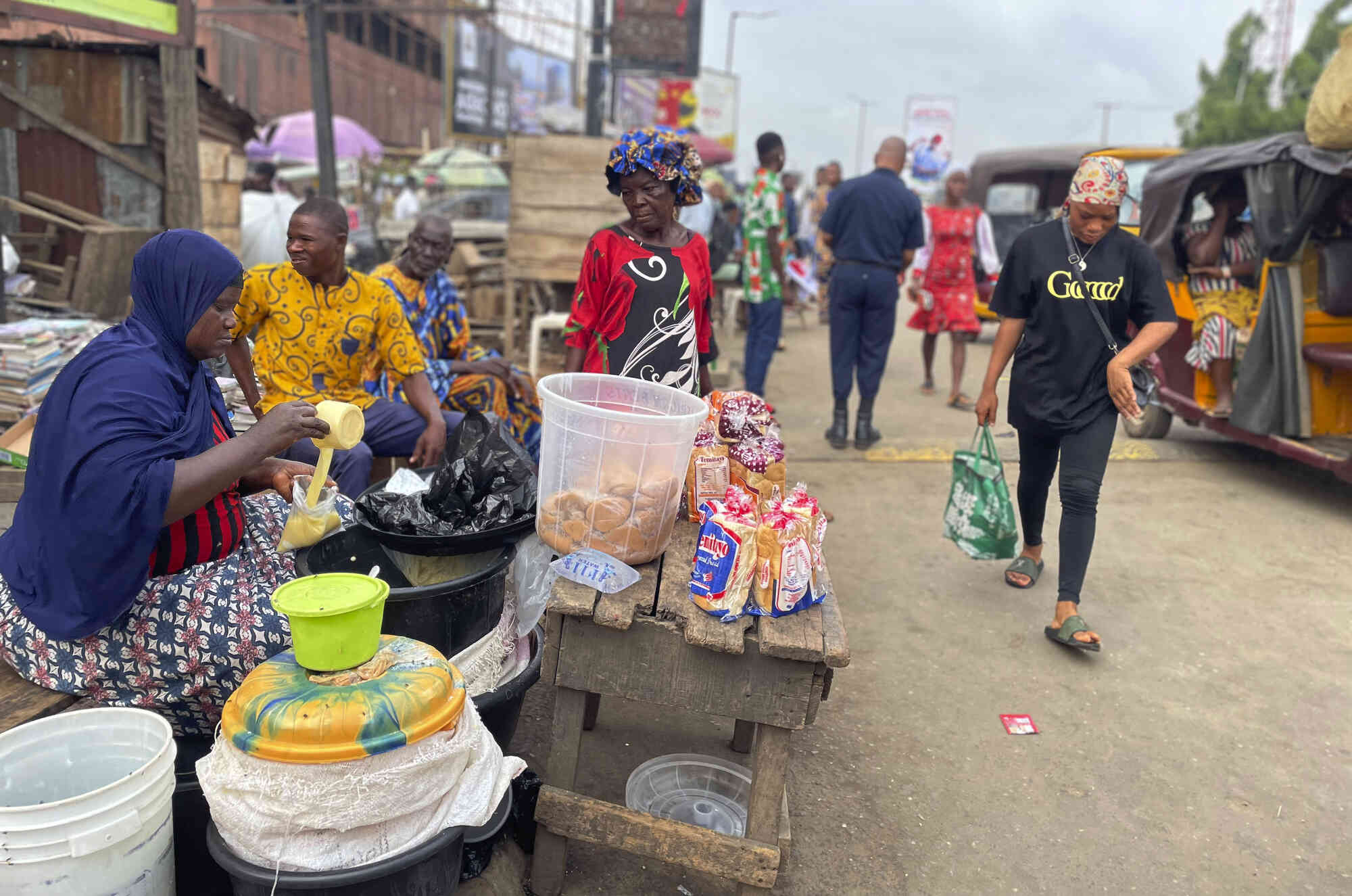 A woman sells pap on the street in Ibadan, Southwest Nigeria, Wednesday, May 29, 2024. (Photo by Sunday Alamba/AP Photo)