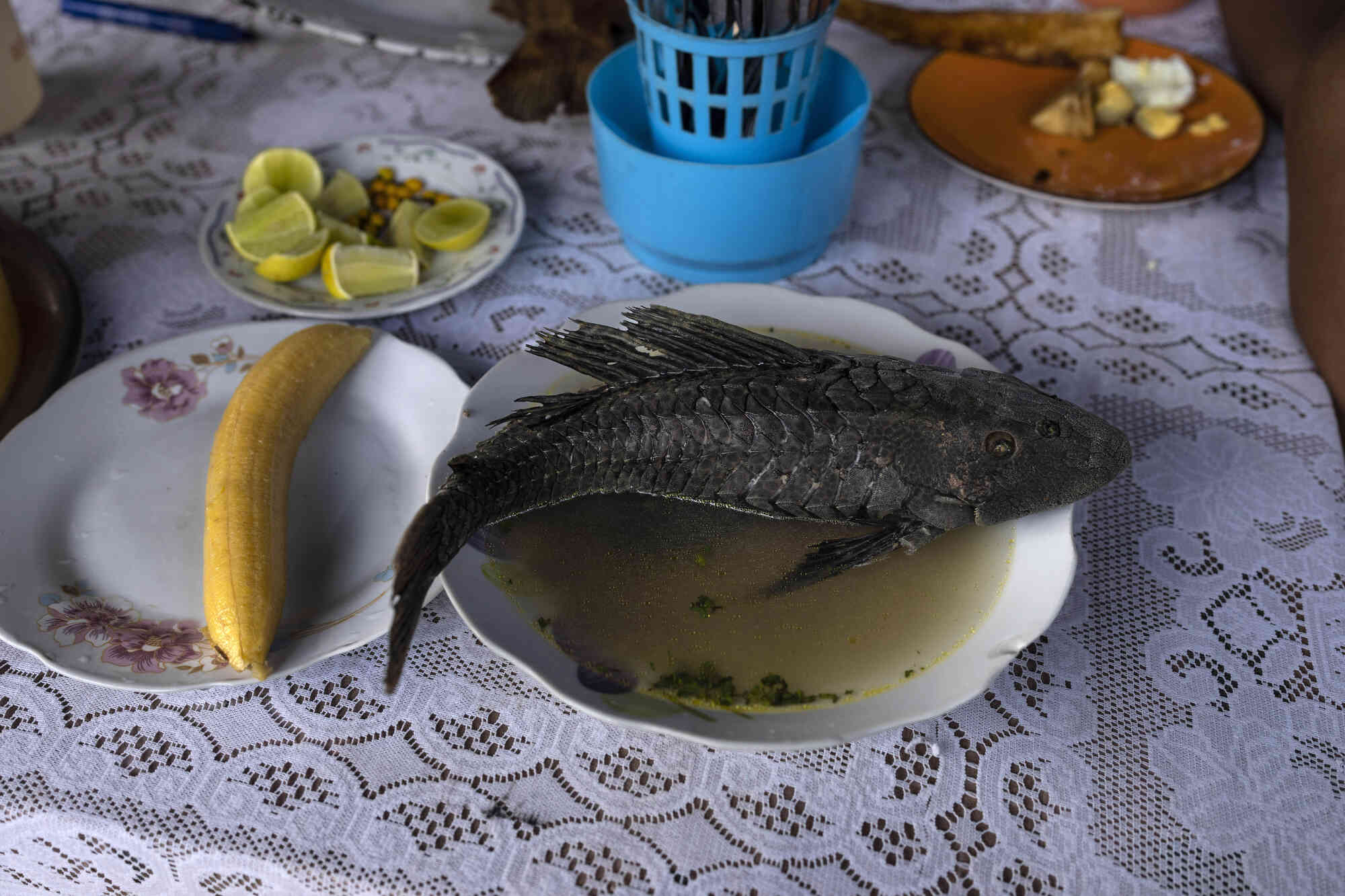 The Amazonian dish “Chilcano de Carachama” is served at a market in the Belen neighborhood of Iquitos, Peru, Saturday May 25, 2024. The Indigenous community in the heart of Peru's Amazon known as the “Venice of the Jungle” is hosting the Muyuna Floating Film Festival, celebrating tropical forests. (Photo by Rodrigo Abd/AP Photo)