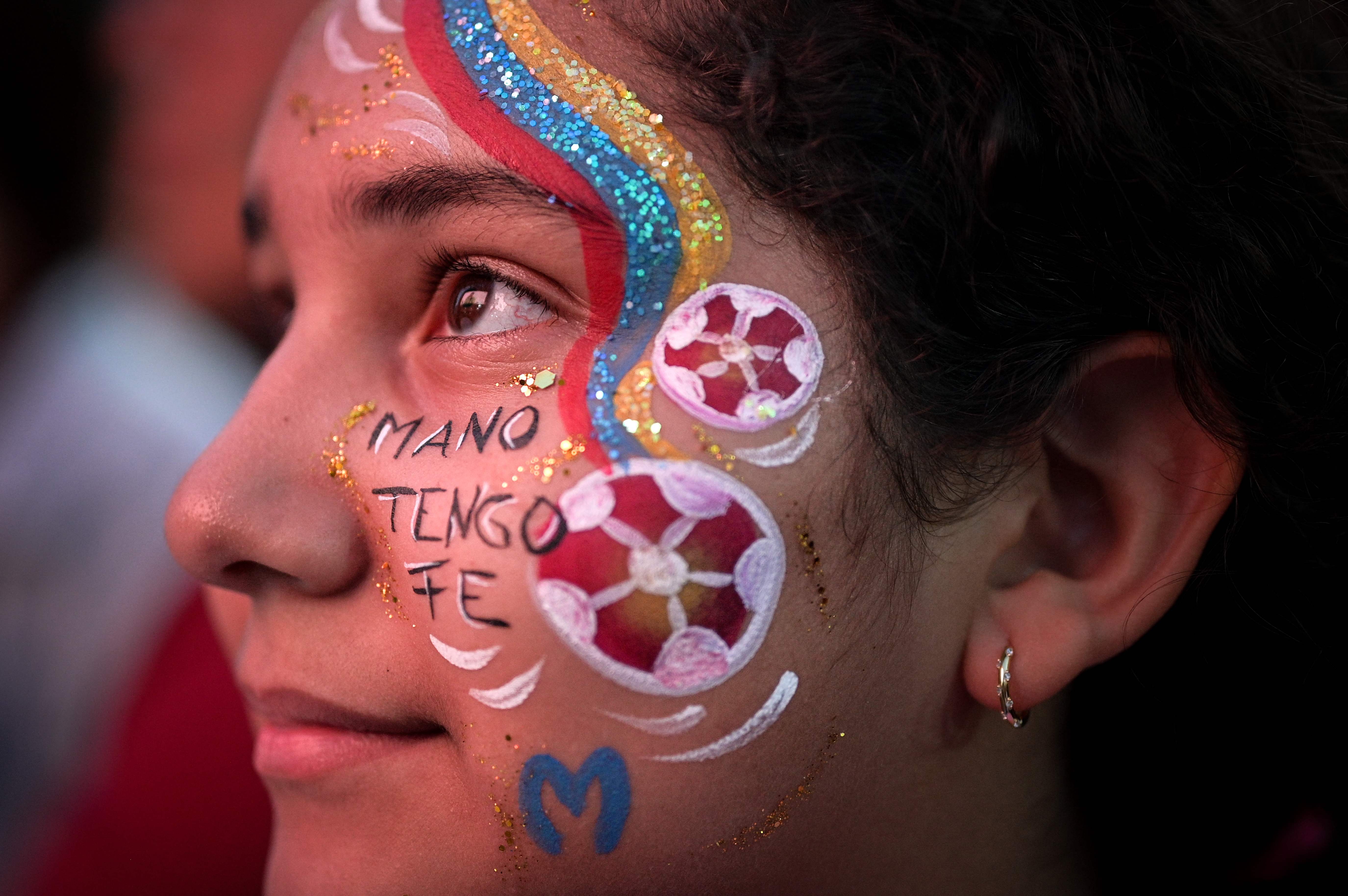 A Venezuelan football fan waits for the start of the 2024 Copa America quarter-final football match between Venezuela and Canada at a Fan Fest in Caracas on July 5, 2024. (Photo by Gabriela Oraa/AFP Photo)