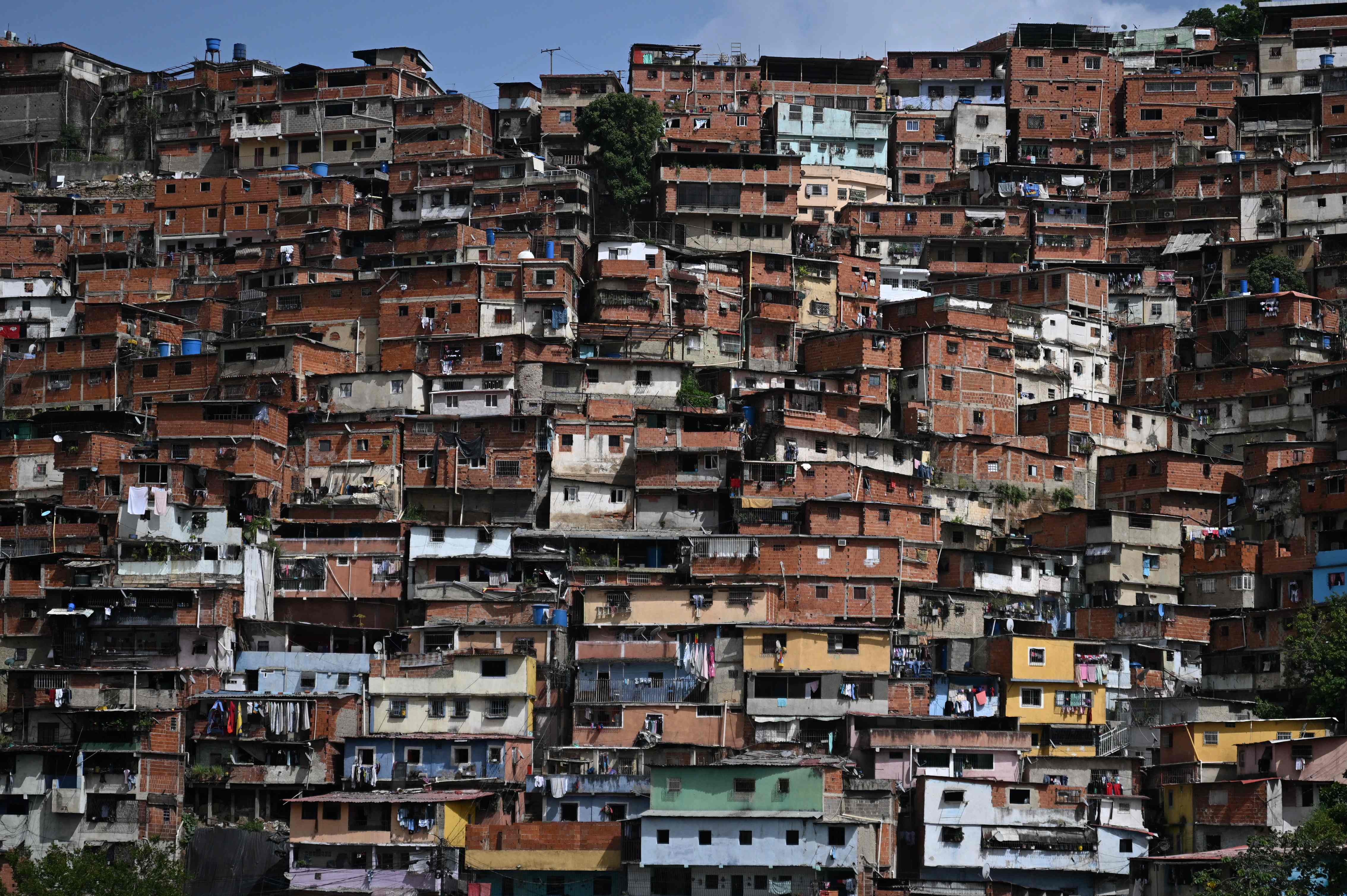 Houses are pictured in Petare Shantytown, Caracas on July 22, 2024. Venezuela will hold general election next July 28 (Photo by Raul Arboleda/AFP Photo)