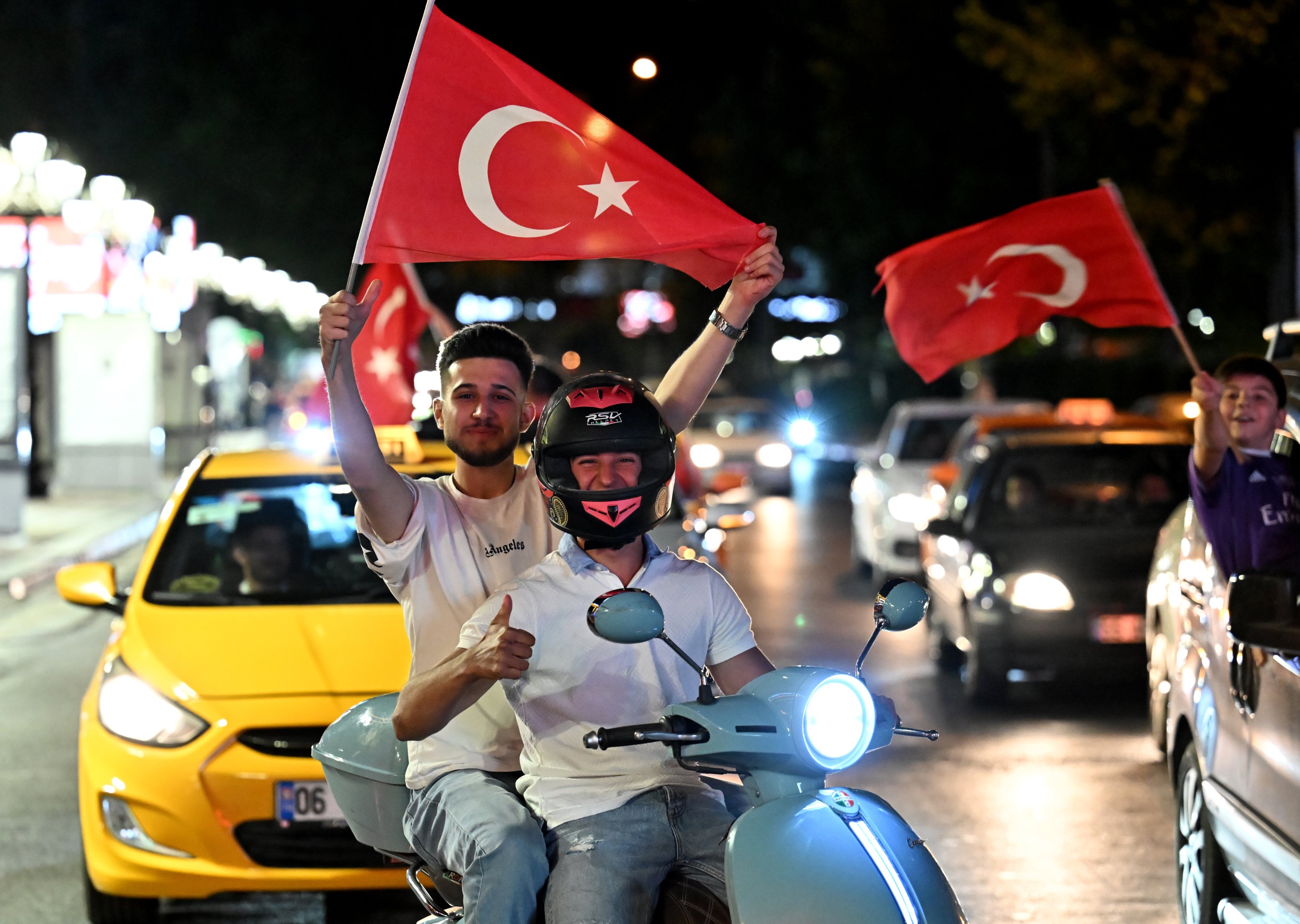 Turkish fans celebrate after their team qualified for last 16 stages following victory with car convoys in the UEFA EURO 2024 group stage match between Czechia and Turkiye on June 26, 2024 in Ankara, Turkiye. (Photo by Rasit Aydogan/Anadolu via Getty Images)