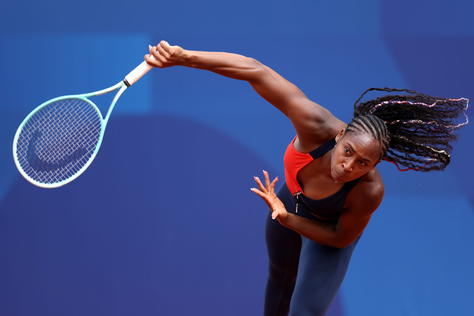 Coco Gauff of Team USA trains during the Tennis training session ahead of the Paris 2024 Olympic Games at Roland Garros on July 24, 2024 in Paris, France. (Photo by Clive Brunskill/Getty Images)