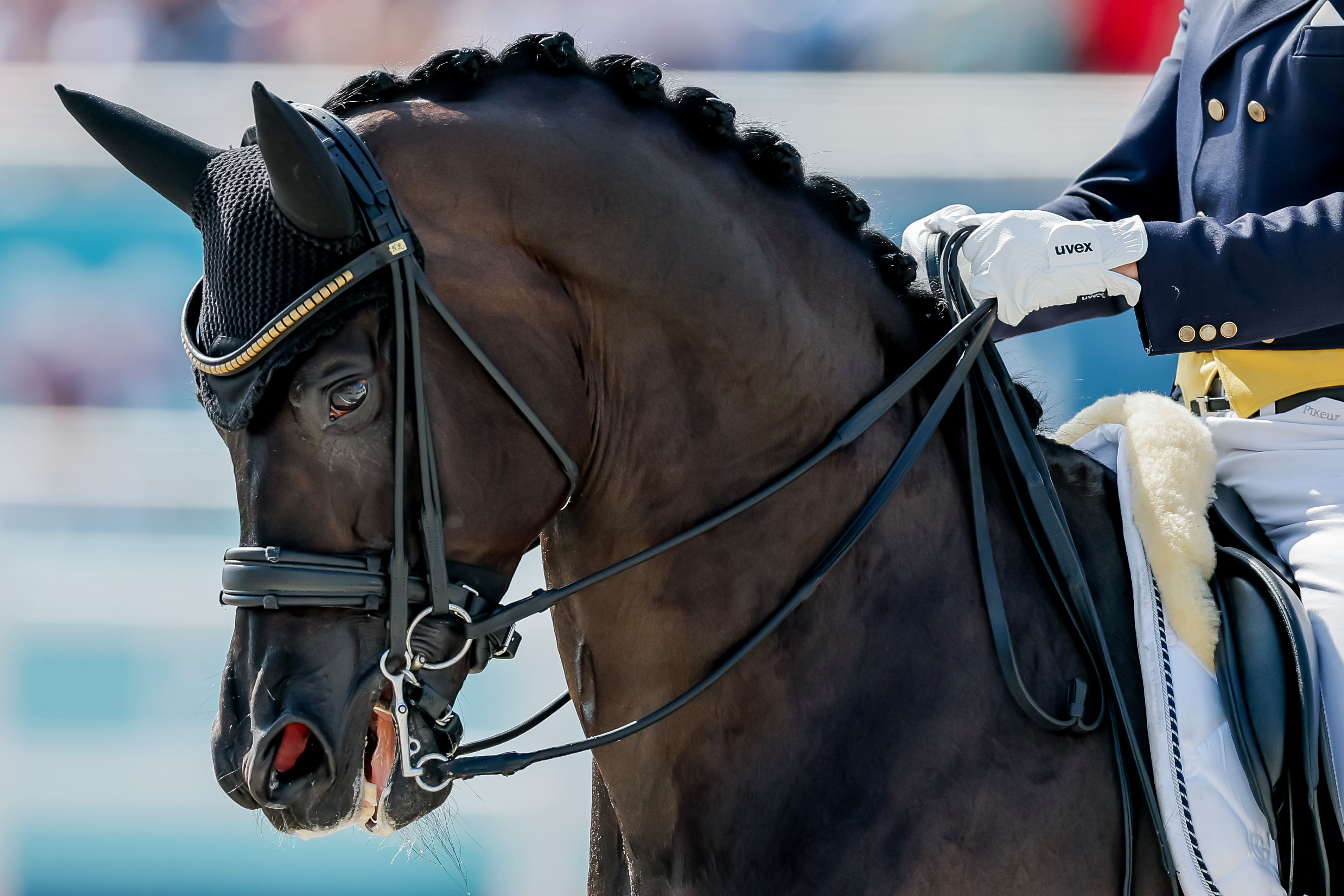Henri Ruoste of Finland riding Tiffanys Diamond during the Paris 2024 Olympic Games Equestrian Team and Individual Dressage Grand Prix Qualifier at Chateau de Versailles, France, 31 July 2024. (Photo by Erik S. Lesser/EPA/EFE)