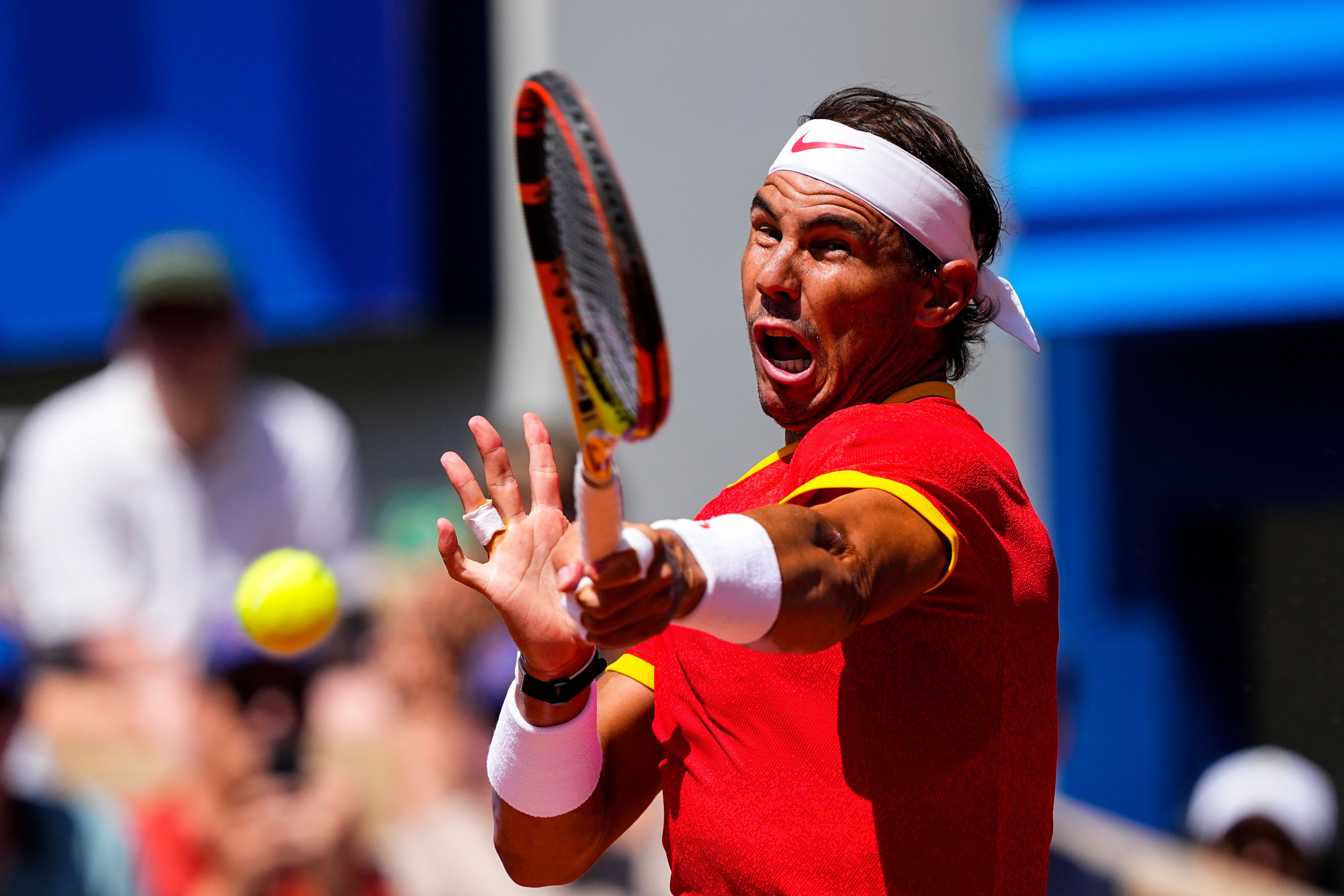 Rafael Nadal of Spain in action against Novak Djokovic of Serbia during the Men's Singles second round match on day three of the Olympic Games Paris 2024 at Roland Garros on July 29, 2024 in Paris, France. (Photo By Oscar J. Barroso/Europa Press via Getty Images)