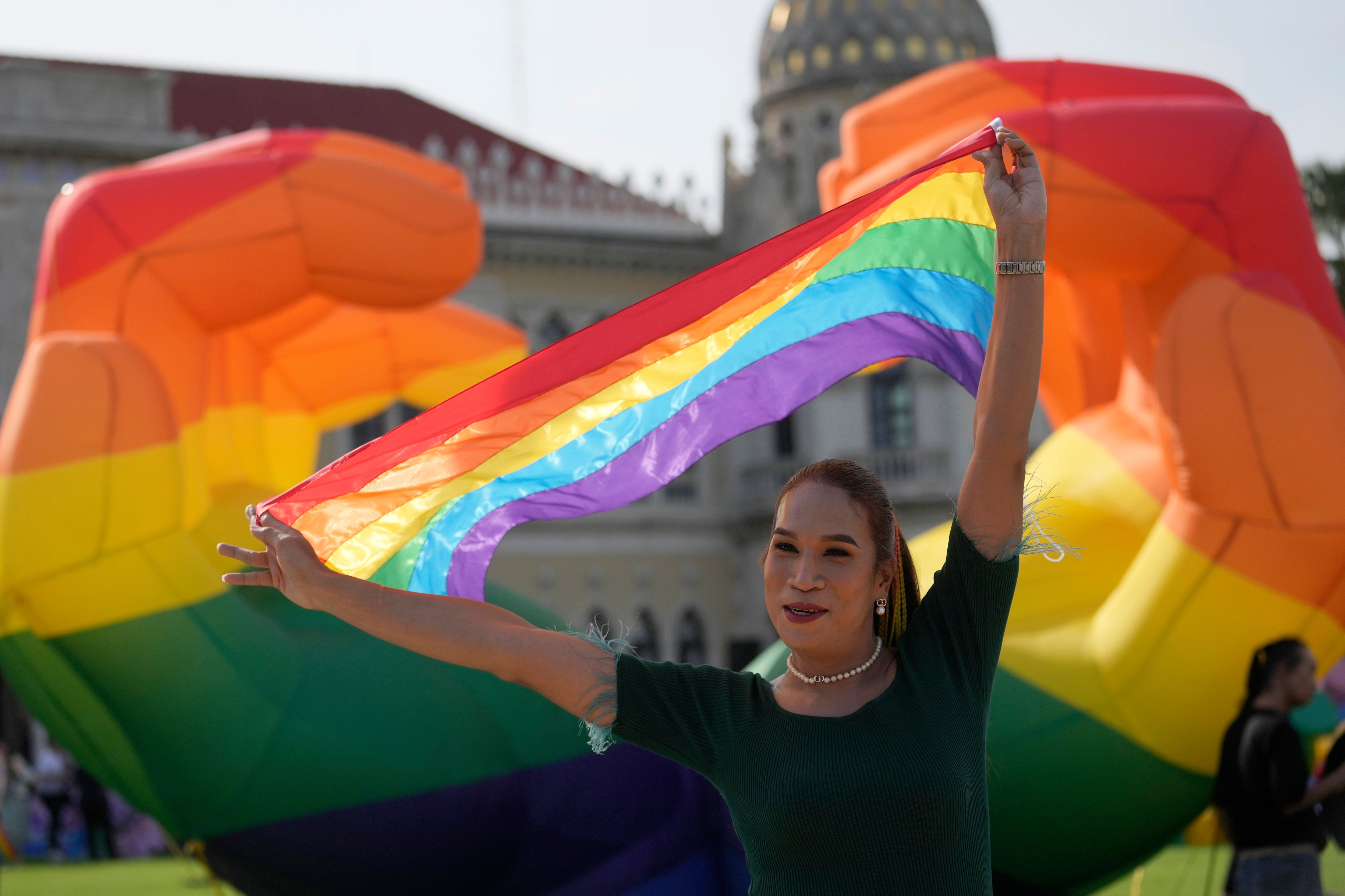 A participant holds a rainbow flag at government house in Bangkok, Thailand, Tuesday, June 18, 2024. Thailand’s Senate voted overwhelmingly on Tuesday to approve a marriage equality bill, clearing the last legislative hurdle for the country to become the first in Southeast Asia to enact such a law. (Photo by Sakchai Lalit/AP Photo)