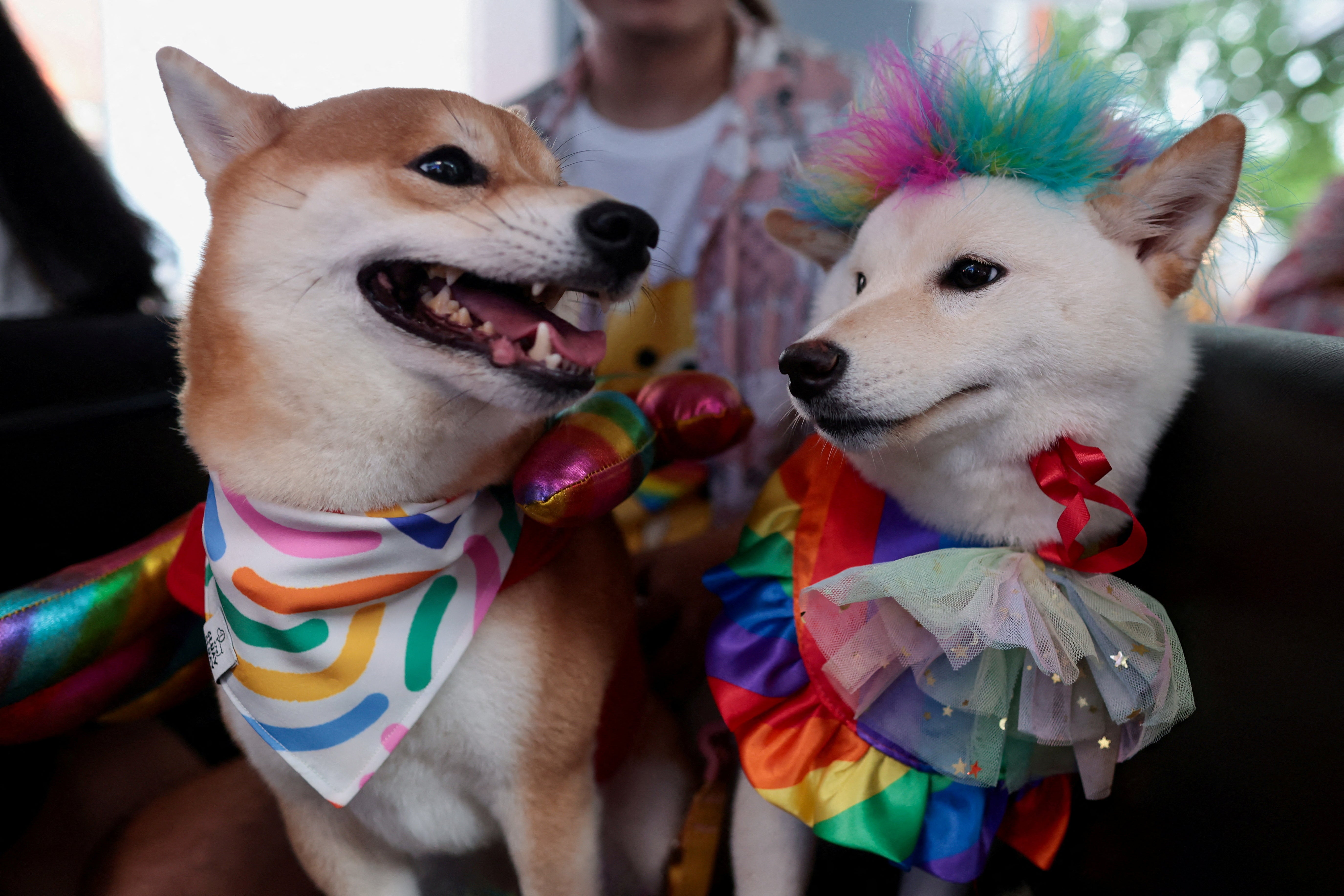 Dogs with rainbow-coloured costumes are seen at an LGBTQ+ Pride parade to celebrate after Thailand's passing of the marriage equality bill, which made it Asia's third territory to legalise same-sex unions, in Bangkok, Thailand, on June 30, 2024. (Photo by Patipat Janthong/Reuters)