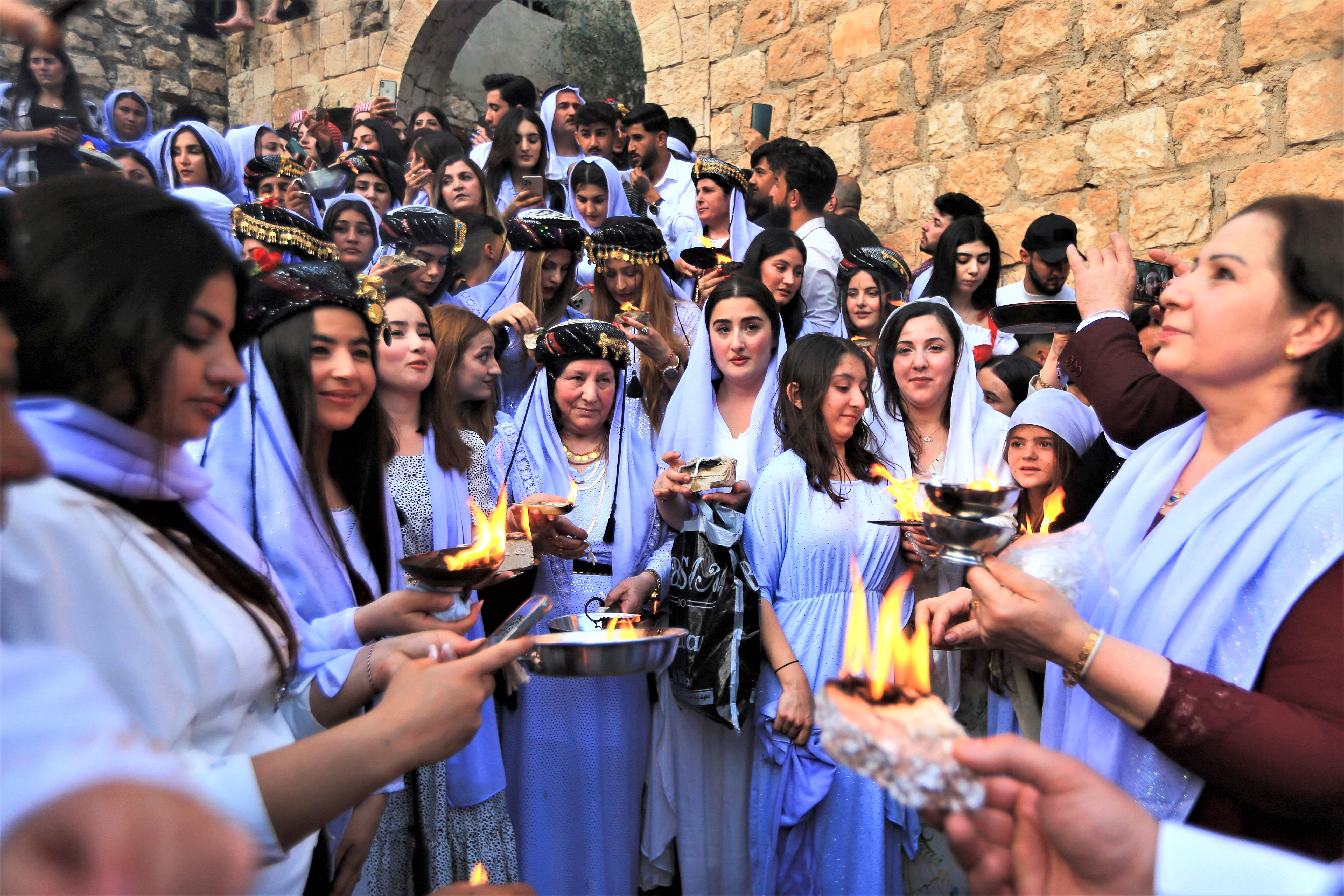 Iraqi Yazidis visit the Lalish Temple, on the day of a ceremony for the occasion of Red Wednesday, the celebration of the Yazidi New Year, in Shekhan district, in Duhok province, Iraq on April 18, 2023. (Photo by Ari Jalal/Reuters)