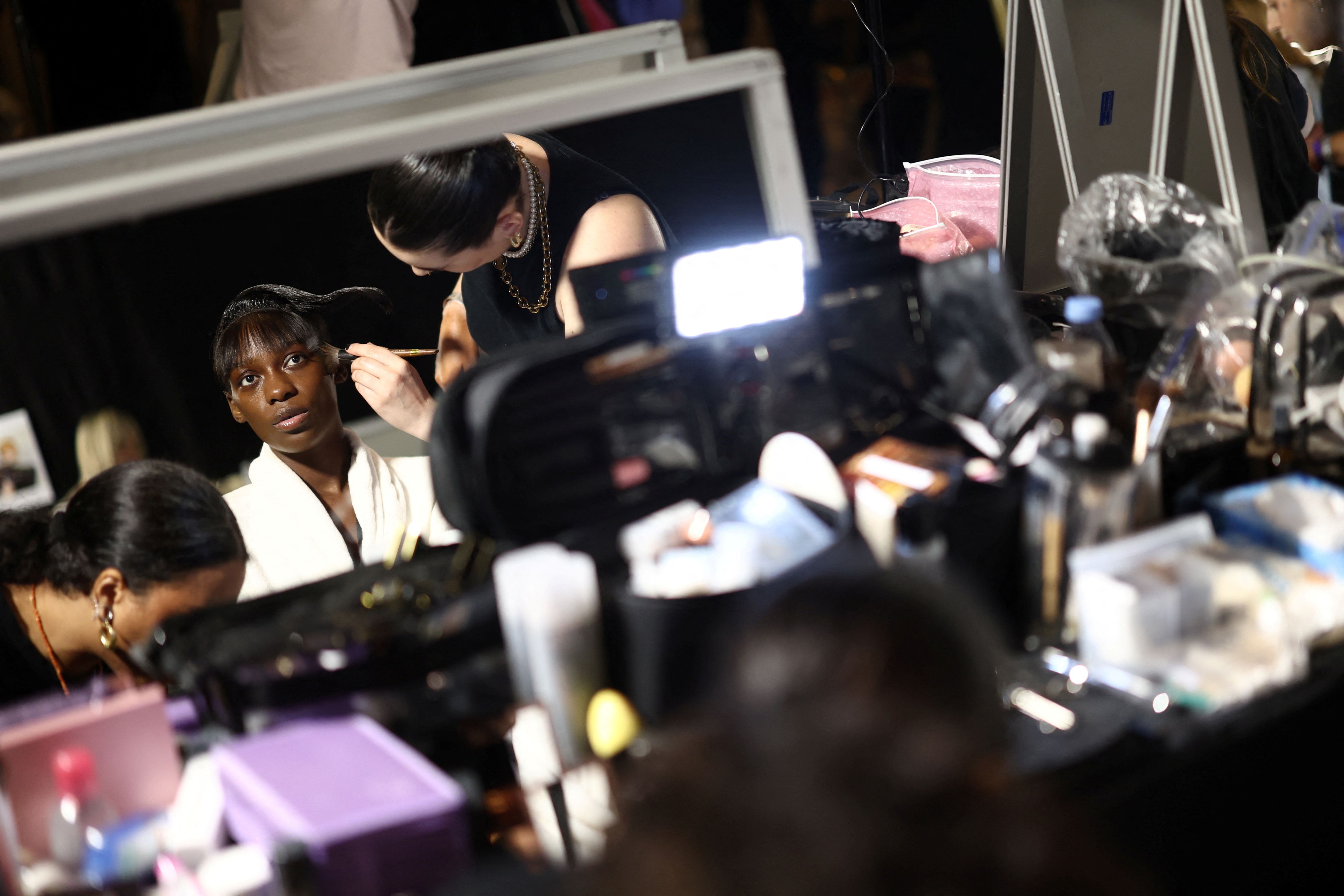 A model has her make-up applied backstage before the Viktor & Rolf Haute Couture Fall/Winter 2024-2025 collection show in Paris, France, on June 26, 2024. (Photo by Stephanie Lecocq/Reuters)