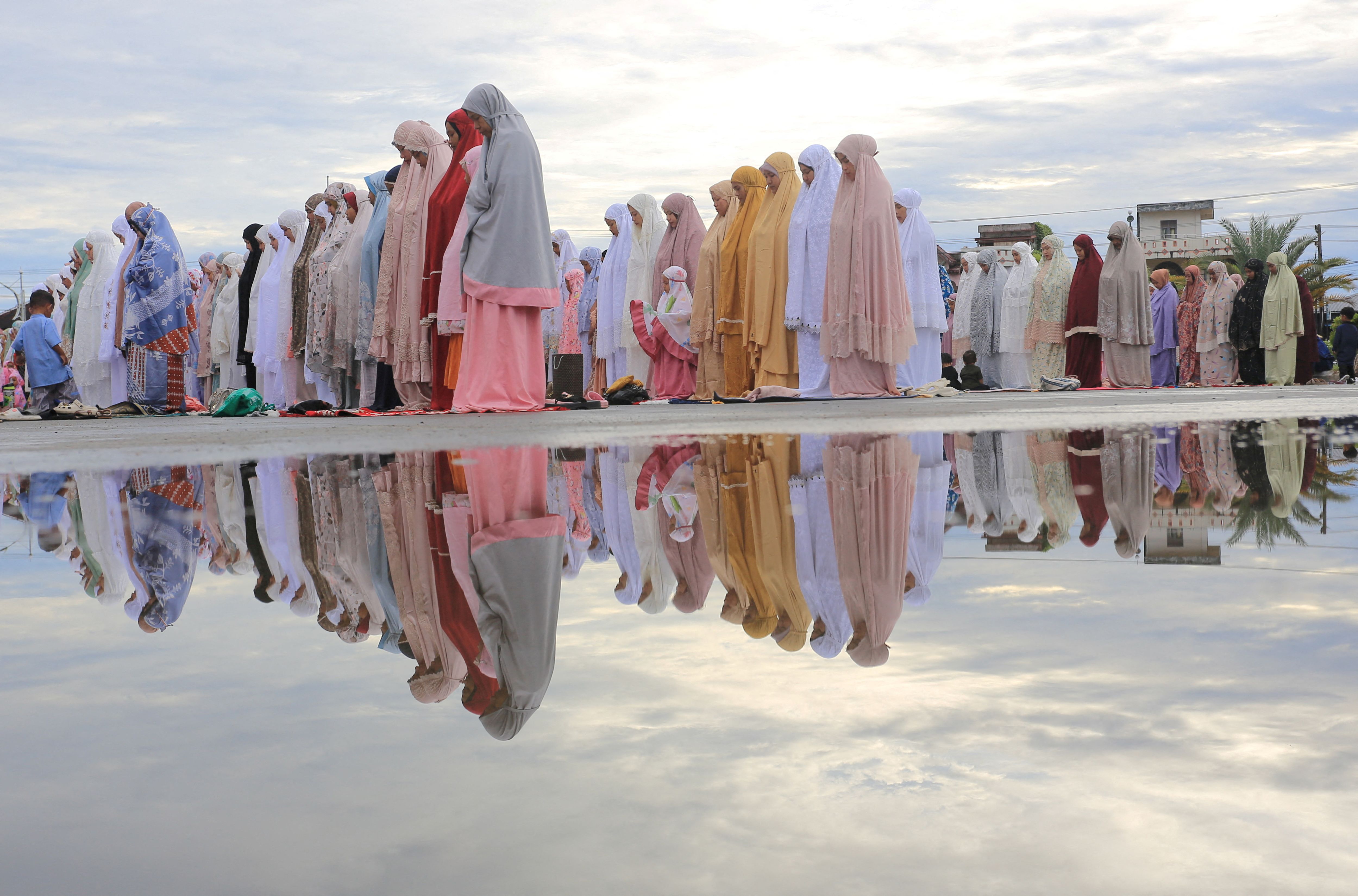 Indonesian Muslims offer mass prayers at Baitul Makmur Grand Masque during Eid al-Adha celebrations in Meulaboh, West Aceh regency, Indonesia, on June 17, 2024, in this photo taken by Antara Foto. (Photo by Syifa Yulinnas/Antara Foto via Reuters)