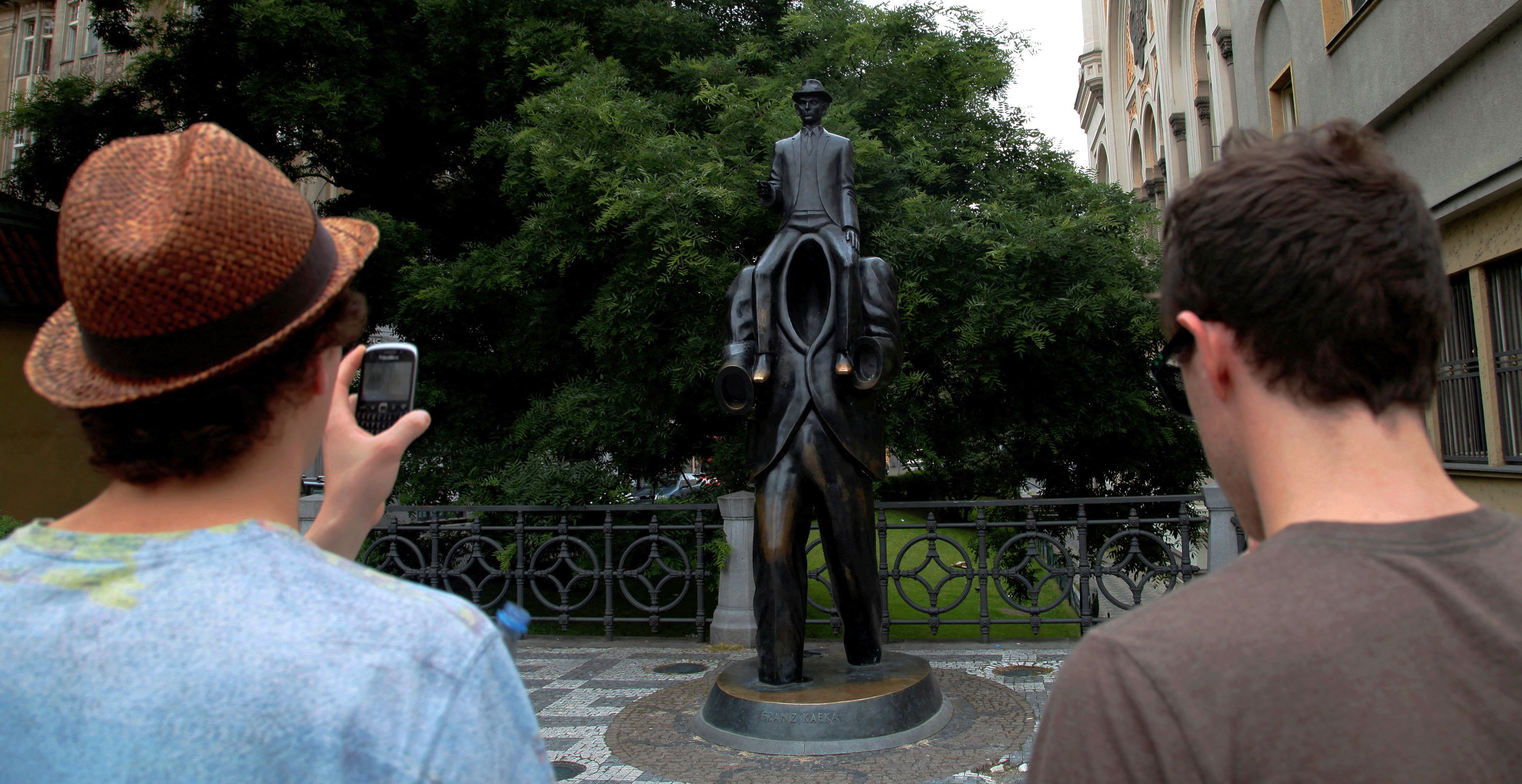 Tourists look at a statue of famous German-language writer Franz Kafka in central Prague July 3, 2013, on the day marking the 130th anniversary of his birth in Prague. (Photo by Petr Josek Snr/Reuters)
