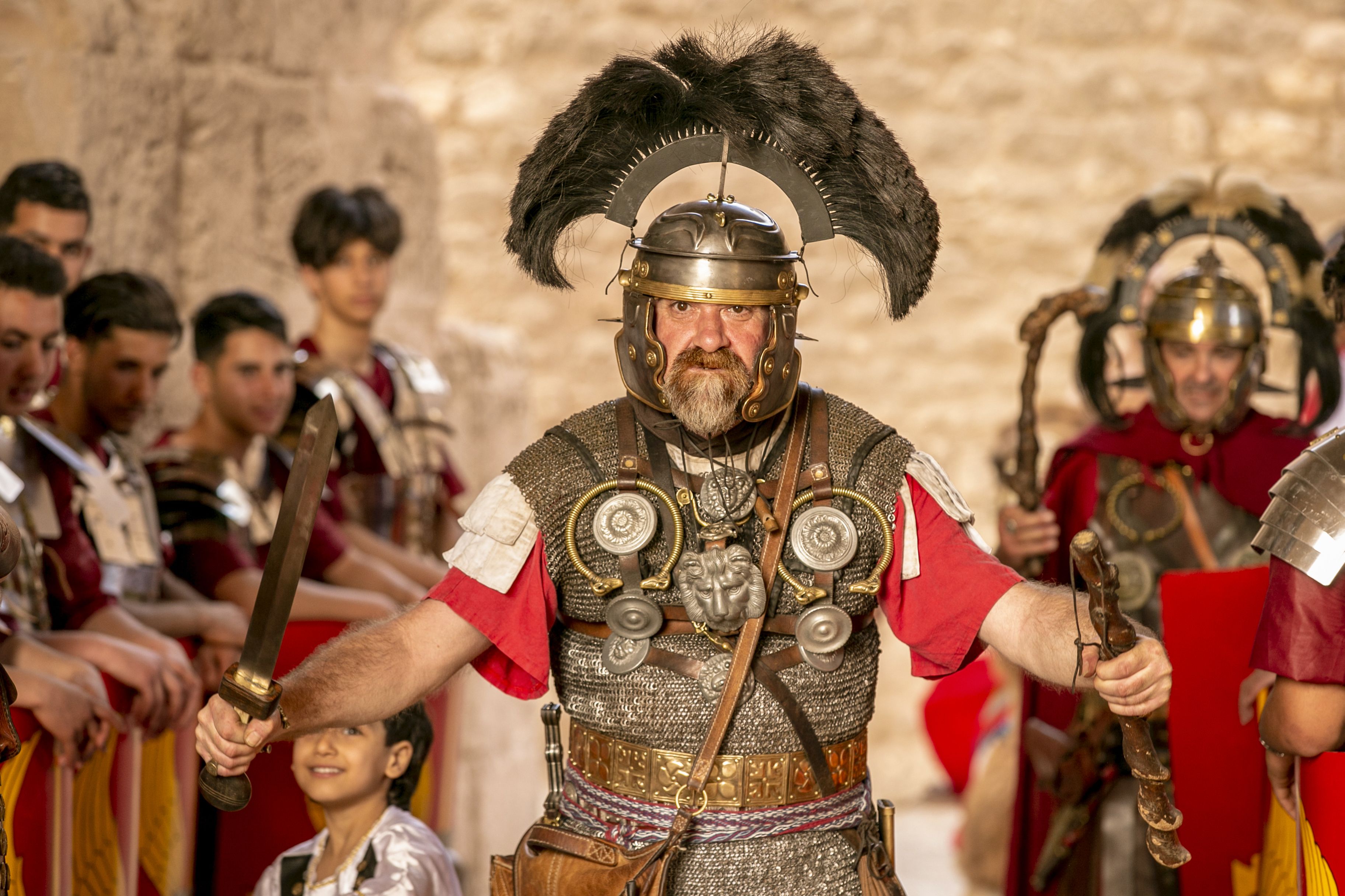 People wearing clothing from Roman Empire period perform within the “Rome Days” Festival at the Amphitheater of El Djem in Mahdia Governorate south of Tunis, Tunisia on April 30, 2023. (Photo by Yassine Gaidi/Anadolu Agency via Getty Images)