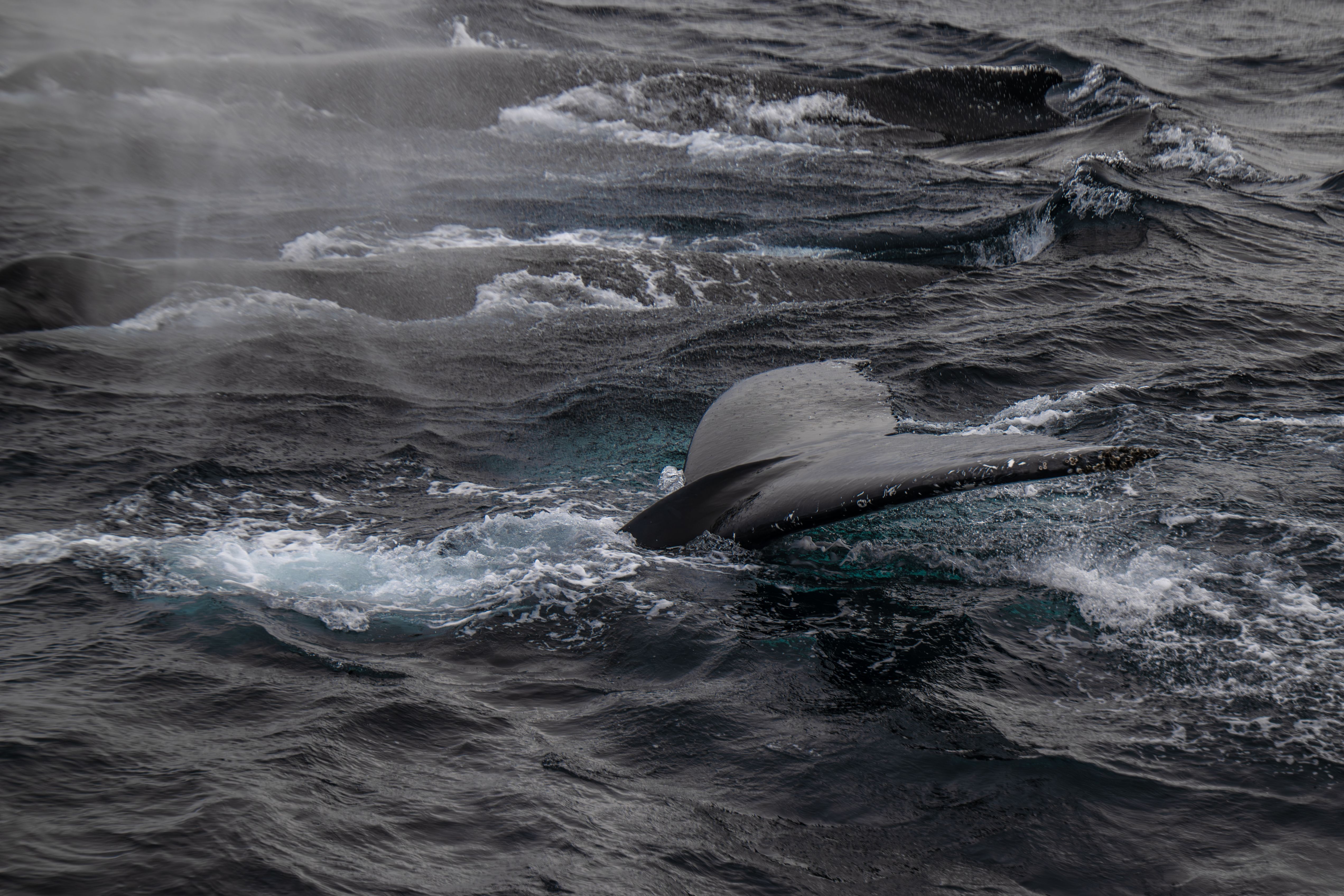 Humpback whales (Megaptera novaeangliae) are seen swimming in the sea during the 4th National Arctic Scientific Research Expedition at Sea off Svalbard and Jan Mayen on July 14, 2024.Turkiye's fourth National Arctic Scientific Research Expedition, comprising an 11-member team, is currently conducting 16 diverse projects in the Arctic Ocean to shed light on the future of our planet. Under the auspices of the Turkish Presidency and Ministry of Industry and Technology, and coordinated by TUBITAK MAM Polar Research Institute, scientists observed the glaciers in the Svalbard archipelago and its surroundings, which were affected by climate change, and the habitats of northern polar creatures. The Arctic Region, which hosts 1/3 of the world's hydrocarbon reserves and includes the Arctic Ocean within its 20 million square kilometers area, is also home to many living species. (Photo by Sebnem Coskun/Anadolu via Getty Images)