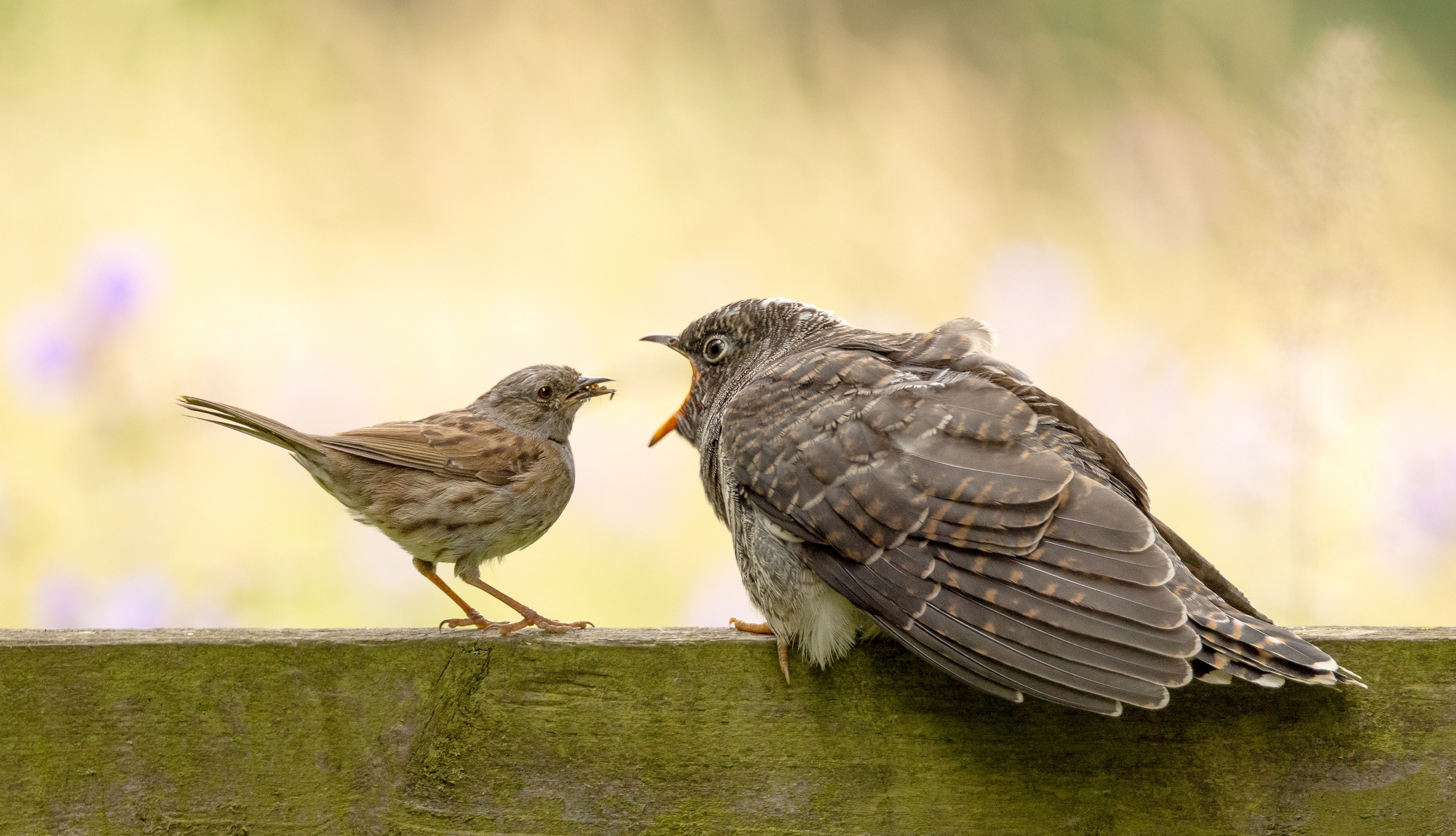 A dunnock bird feeds a cuckoo after it hatched in the nest he was tending in Rutland Nature Reserve, in Rutland, East Midlands, England on July 23, 2024. (Photo by Ann Aveyard/Animal News Agency)