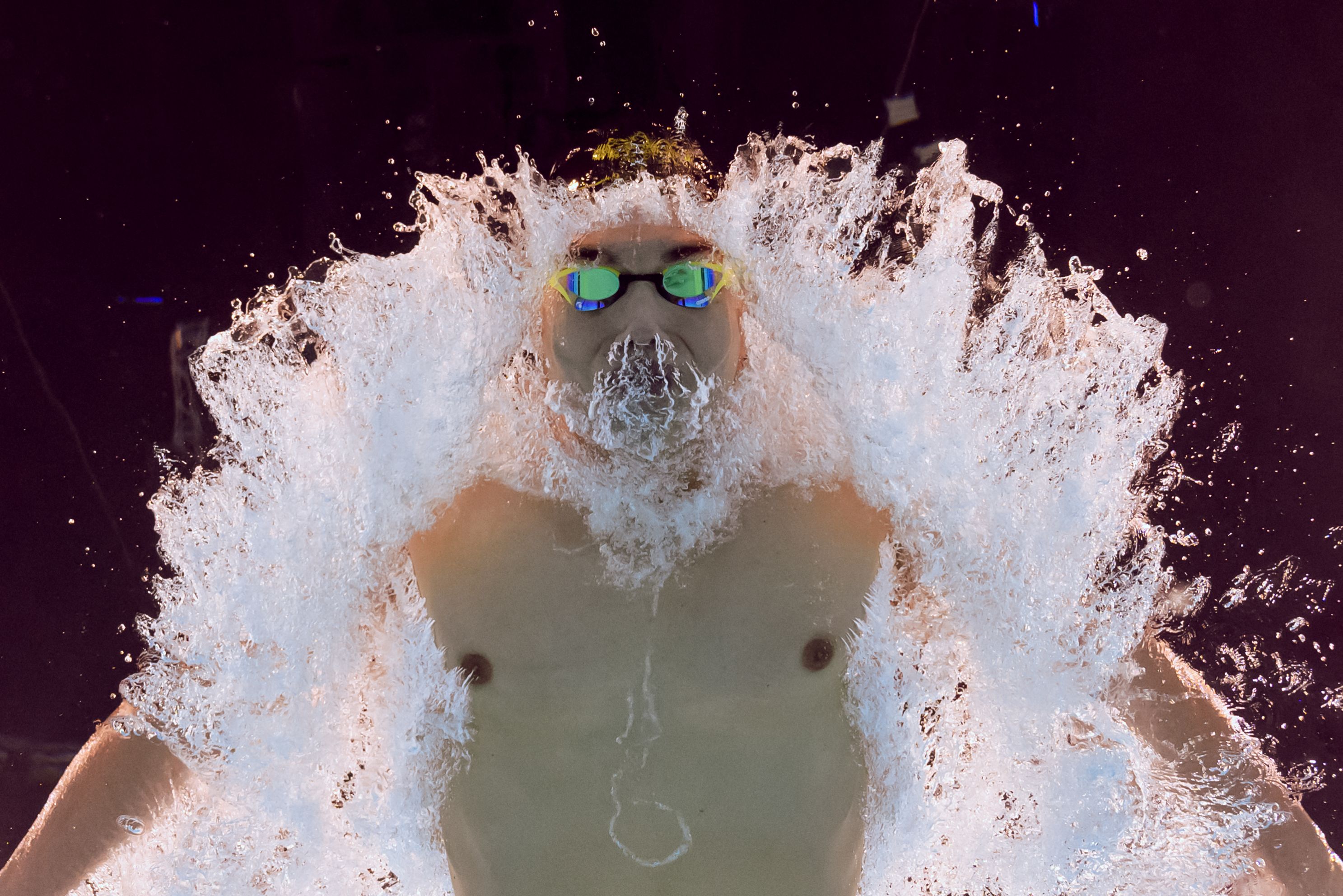An underwater view shows Hungary's Kristof Milak competing in a heat of the men's 200m butterfly swimming event during the Paris 2024 Olympic Games at the Paris La Defense Arena in Nanterre, west of Paris, on July 30, 2024. (Photo by Oli Scarff/AFP Photo)