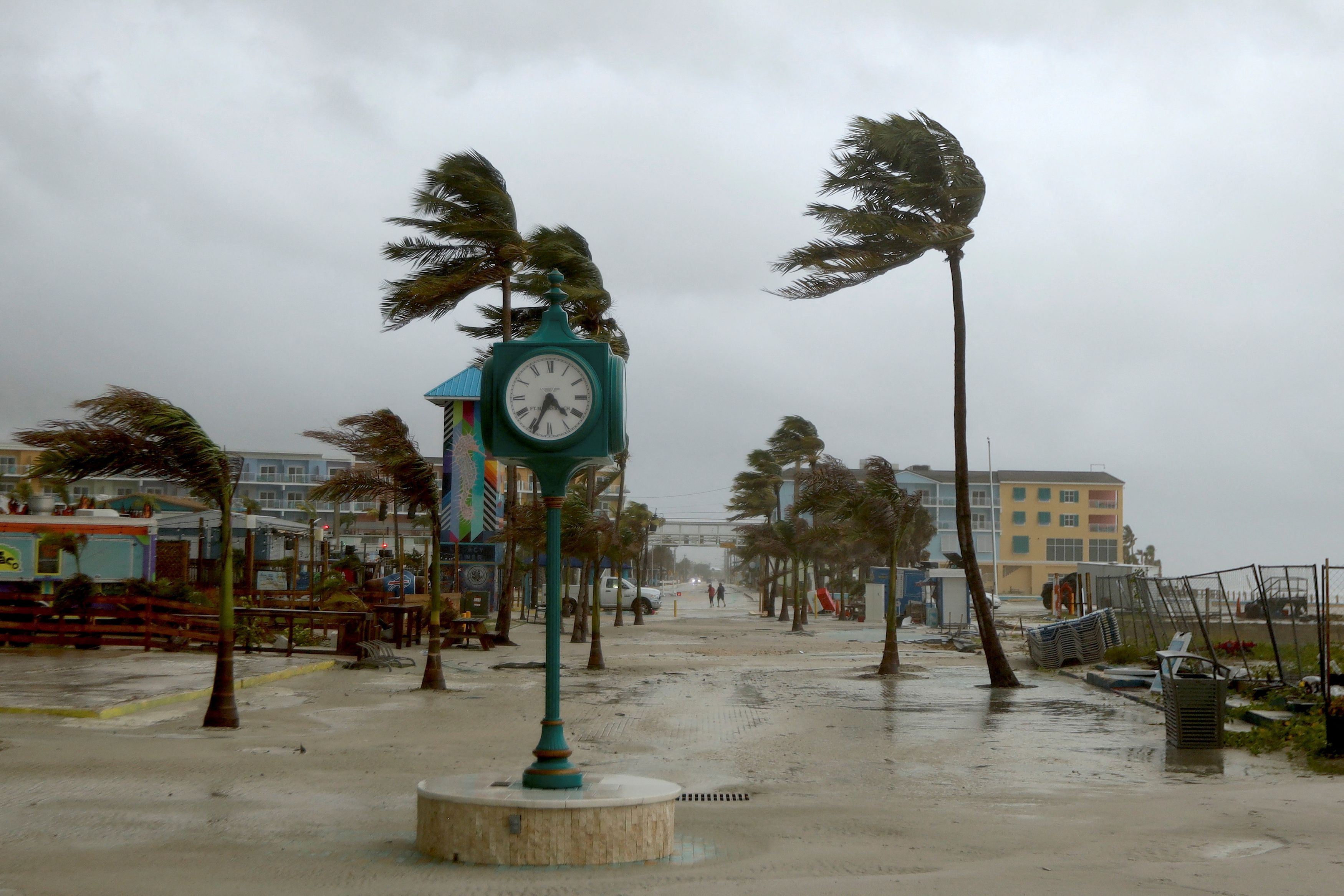 Palm trees blow from Tropical Storm Debby's bands, in Ft. Myers Beach, Florida, United States, on August 4, 2024. (Photo by Maria Alejandra Cardona/Reuters)