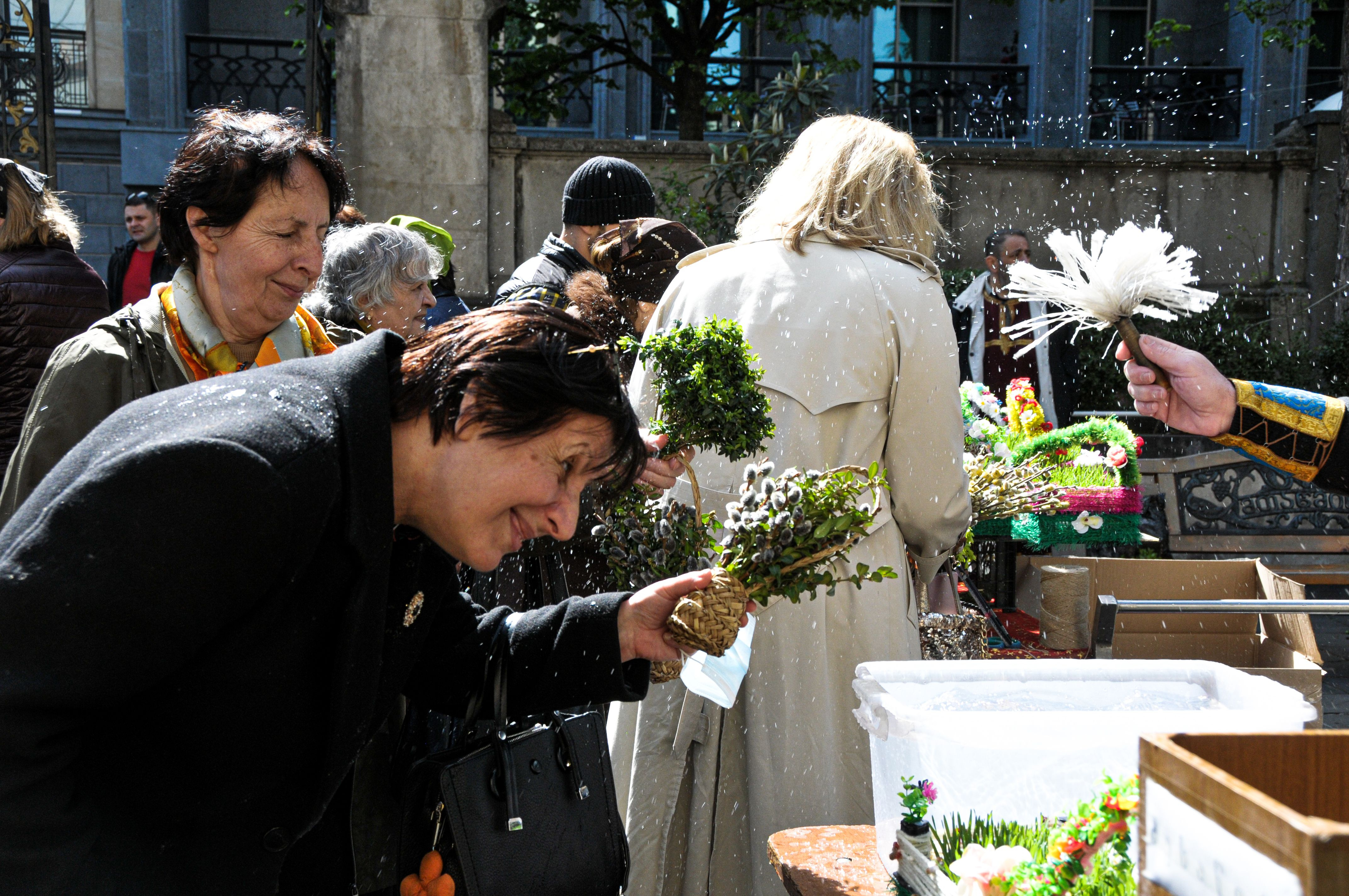 Georgians celebrate Orthodox Palm Sunday at the Kashveti Cathedral in Tbilisi, Georgia on April 8, 2023. Palm Sunday is a Christian moveable feast which always falls on the Sunday before Easter. In many Christian churches, Palm Sunday is marked by the distribution of the palm leaves to the assembled worshipers. (Photo by Nicolo Vincenzo Malvestuto/Rex Features/Shutterstock)