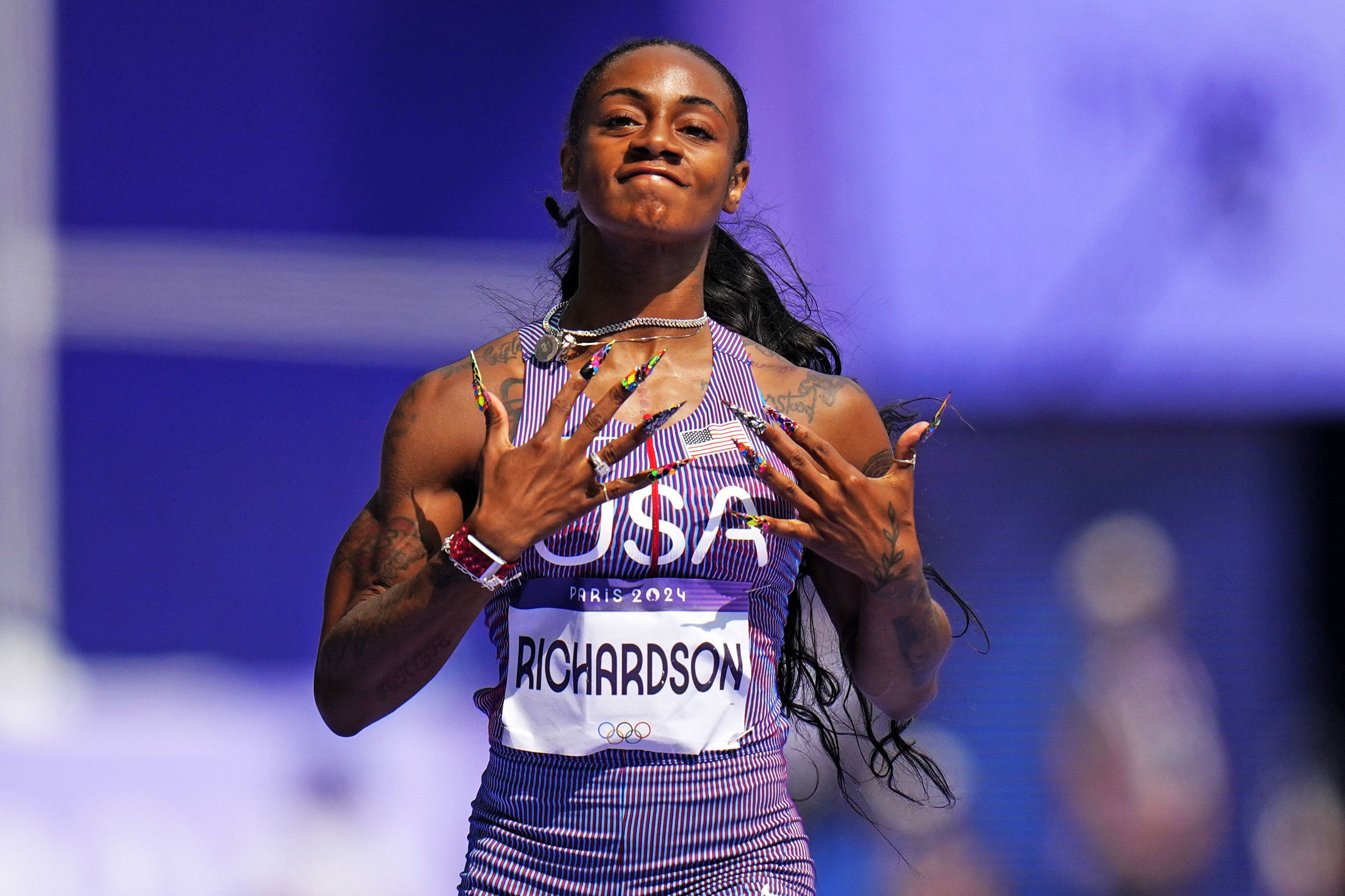 Sha'carri Richardson of the United States, wins a heat in the women's 100-meter run at the 2024 Summer Olympics, Friday, August 2, 2024, in Saint-Denis, France. (Photo by Petr David Josek/AP Photo)