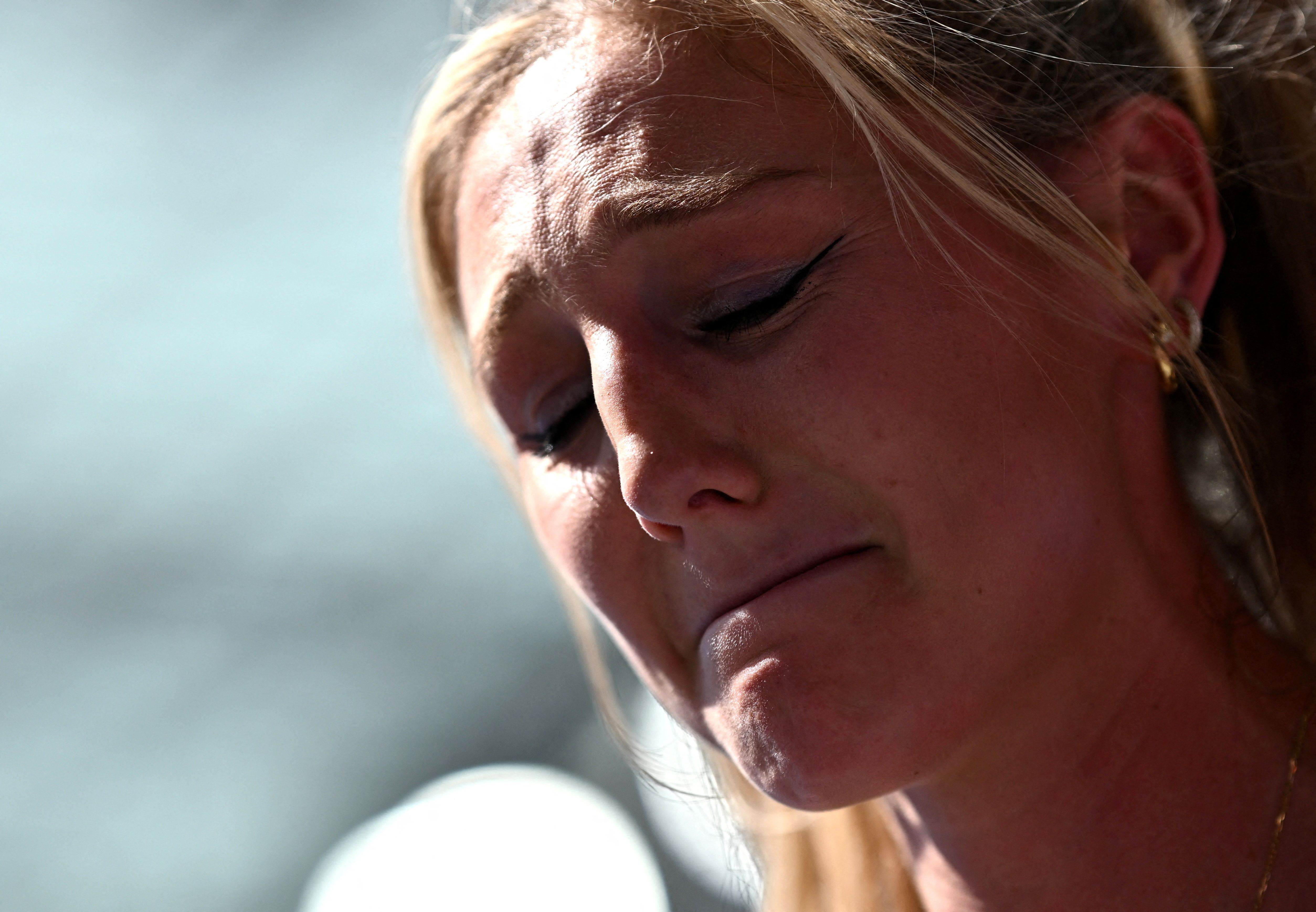 Molly Caudery of Team Great Britain reacts after failing her last try during Women's Pole Vault Qualification on day ten of the Olympic Games Paris 2024 at Stade de France on August 05, 2024 in Paris, France. (Photo by Dylan Martinez/Reuters)