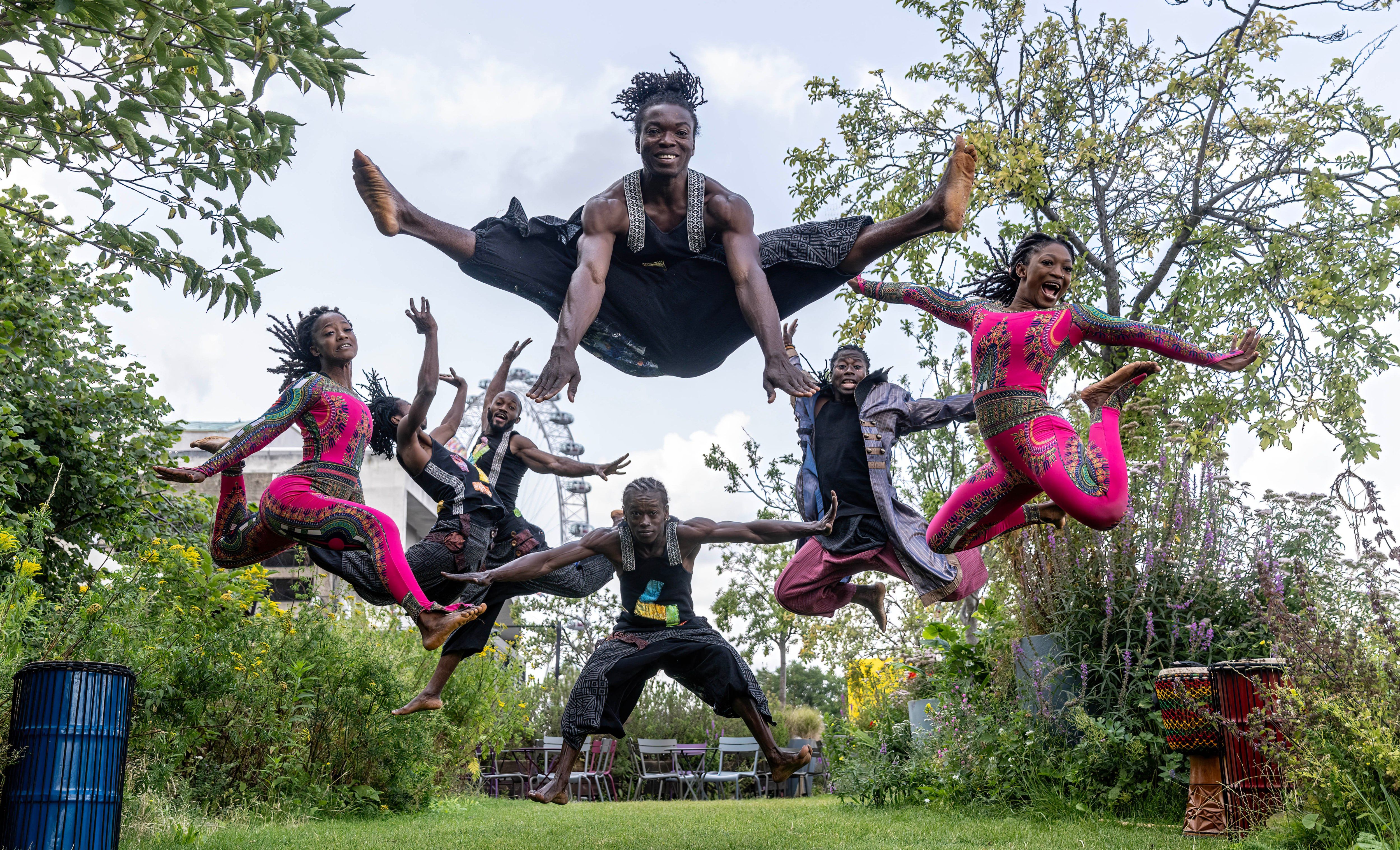 Members of Afrique en Cirque perform on the roof garden of the Southbank Centre, London on July 24, 2024. They appear at the centre’s Queen Elizabeth Hall twice daily this week. (Photo by Richard Pohle/The Times)