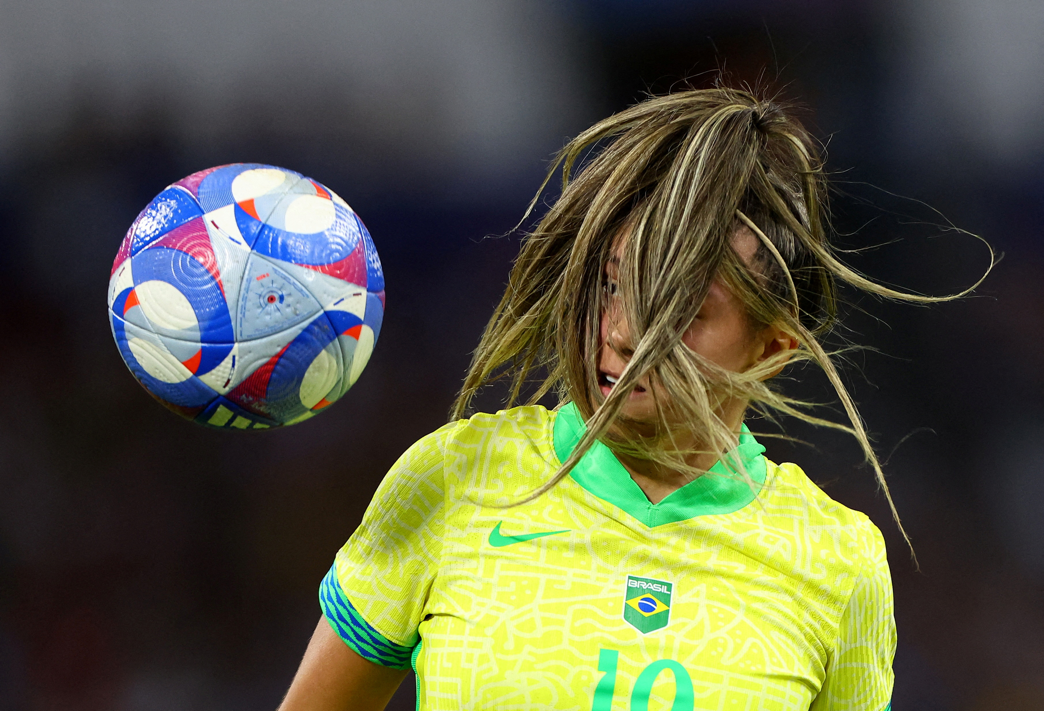Priscila of Brazil in action during their women's soccer semifinal against Spain on August 6, 2024. (Photo by Luisa Gonzalez/Reuters)