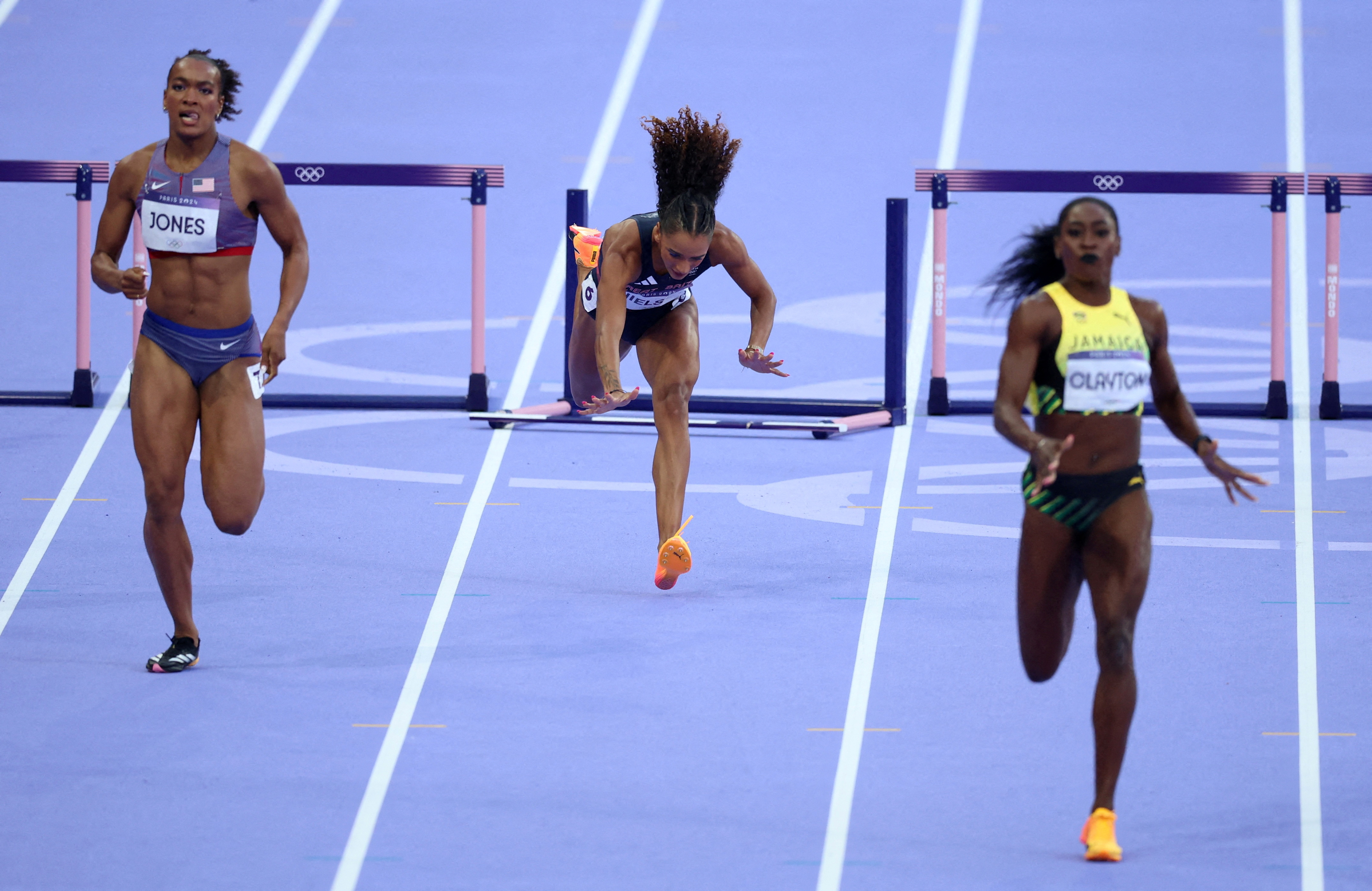 Lina Nielsen of Great Britain competes during Women's 400m Hurdles Semi-Final of the Athletics on Stade de France during the Paris 2024 Olympics Games on August 6, 2024 in Paris, France. (Photo by Phil Noble/Reuters)
