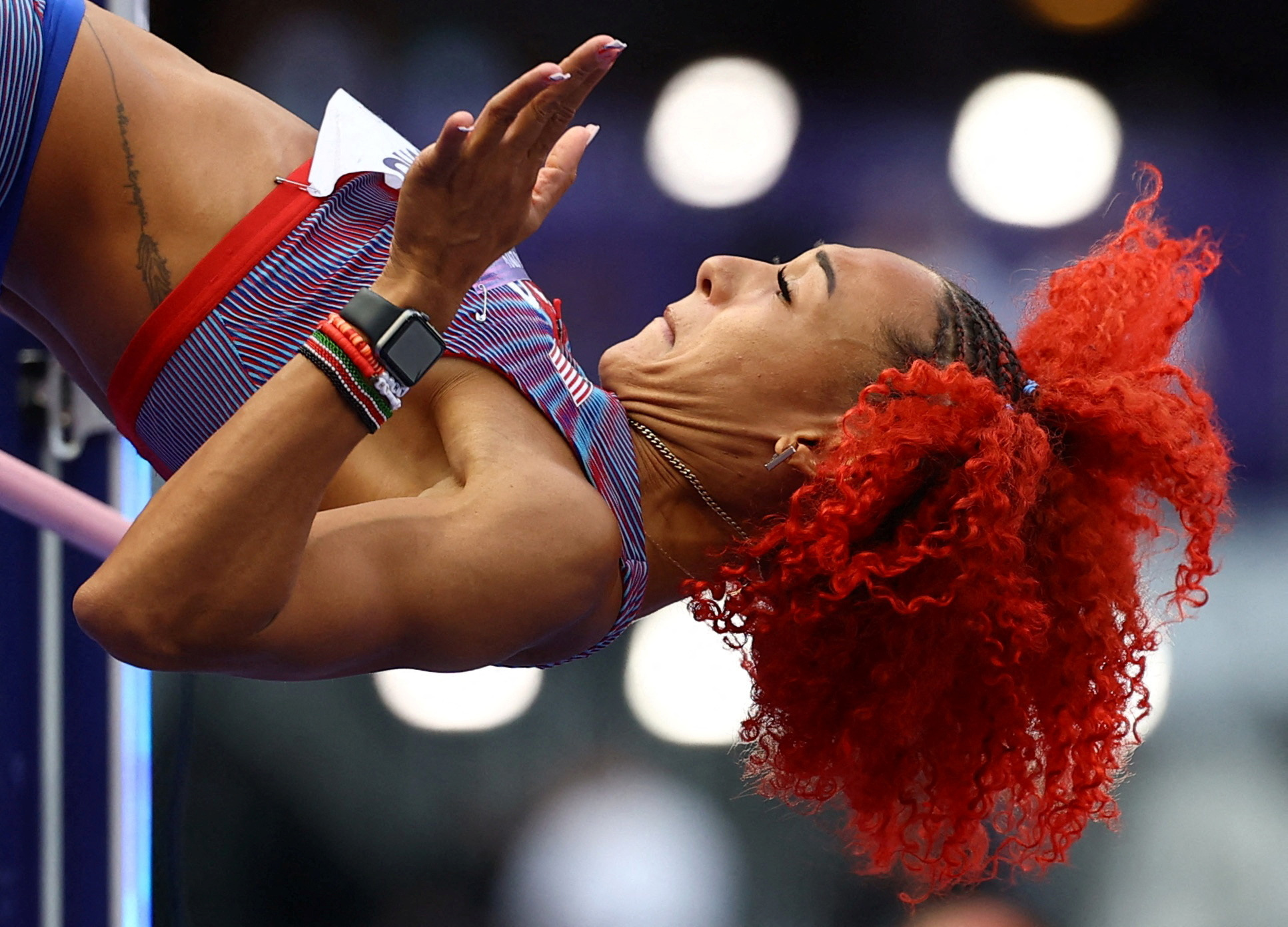 Taliyah Brooks of United States competes during Women's Heptathlon High Jump of the Athletics on Stade de France during the Paris 2024 Olympics Games on August 8, 2024 in Paris, France. (Photo by Kai Pfaffenbach/Reuters)