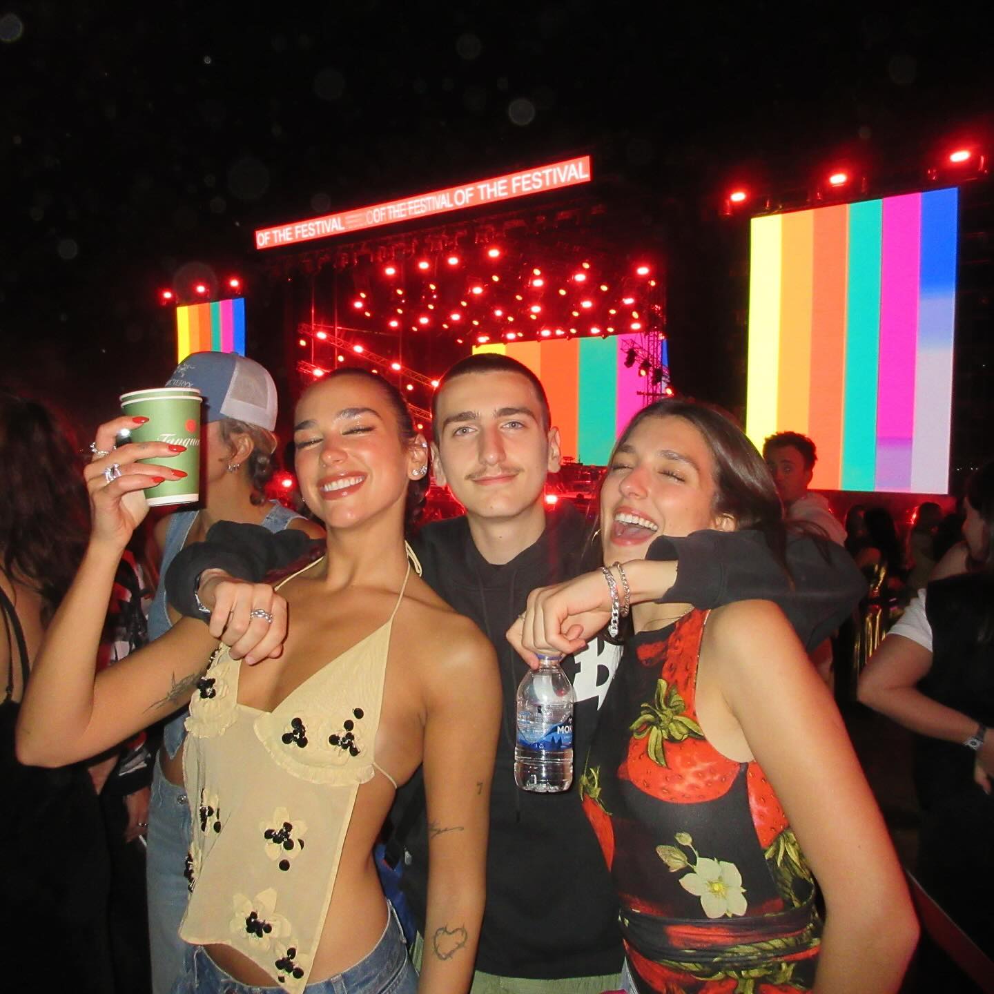 English-Albanian singer Dua Lipa (L) parties at Sunny Hill Festival with friends in the last decade of July 2024. (Photo by dualipa/Instagram)
