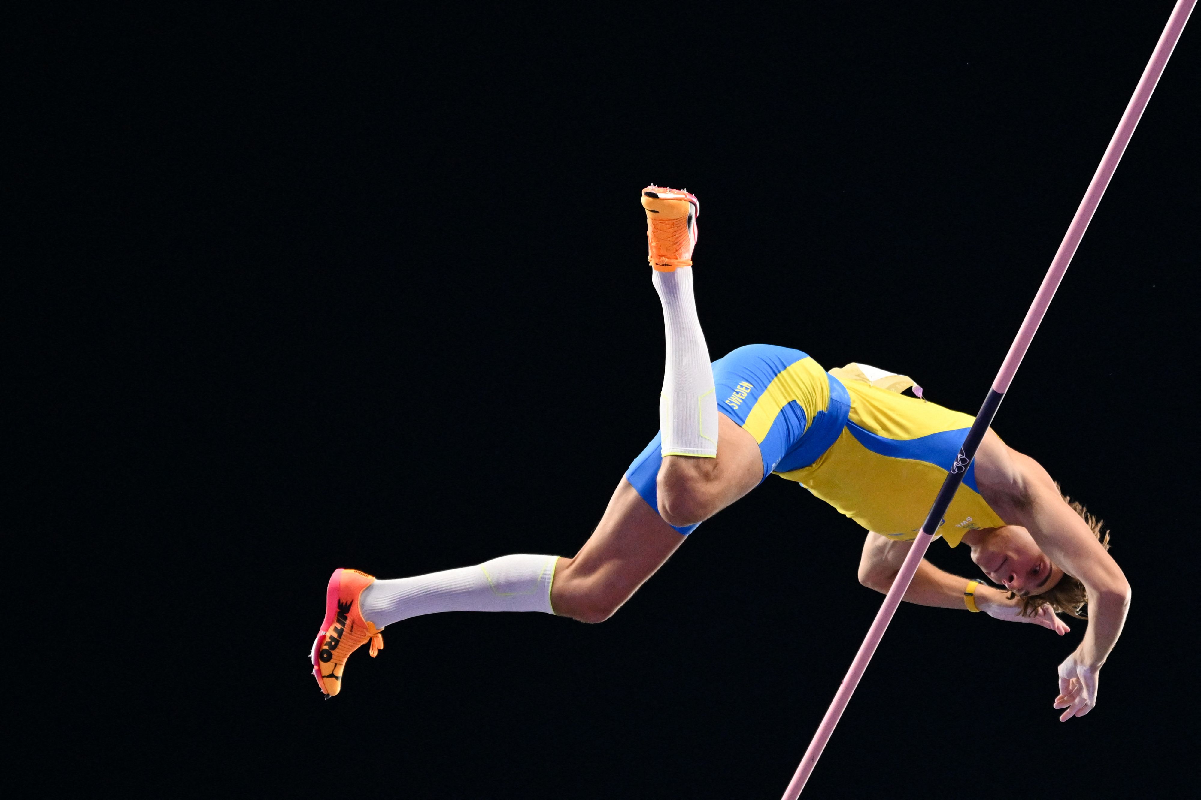 Sweden's Armand Duplantis passes 6.10m and sets the new Olympic record in the men's pole vault final of the athletics event at the Paris 2024 Olympic Games at Stade de France in Saint-Denis, north of Paris, on August 5, 2024. (Photo by Kirill Kudryavtsev/AFP Photo)