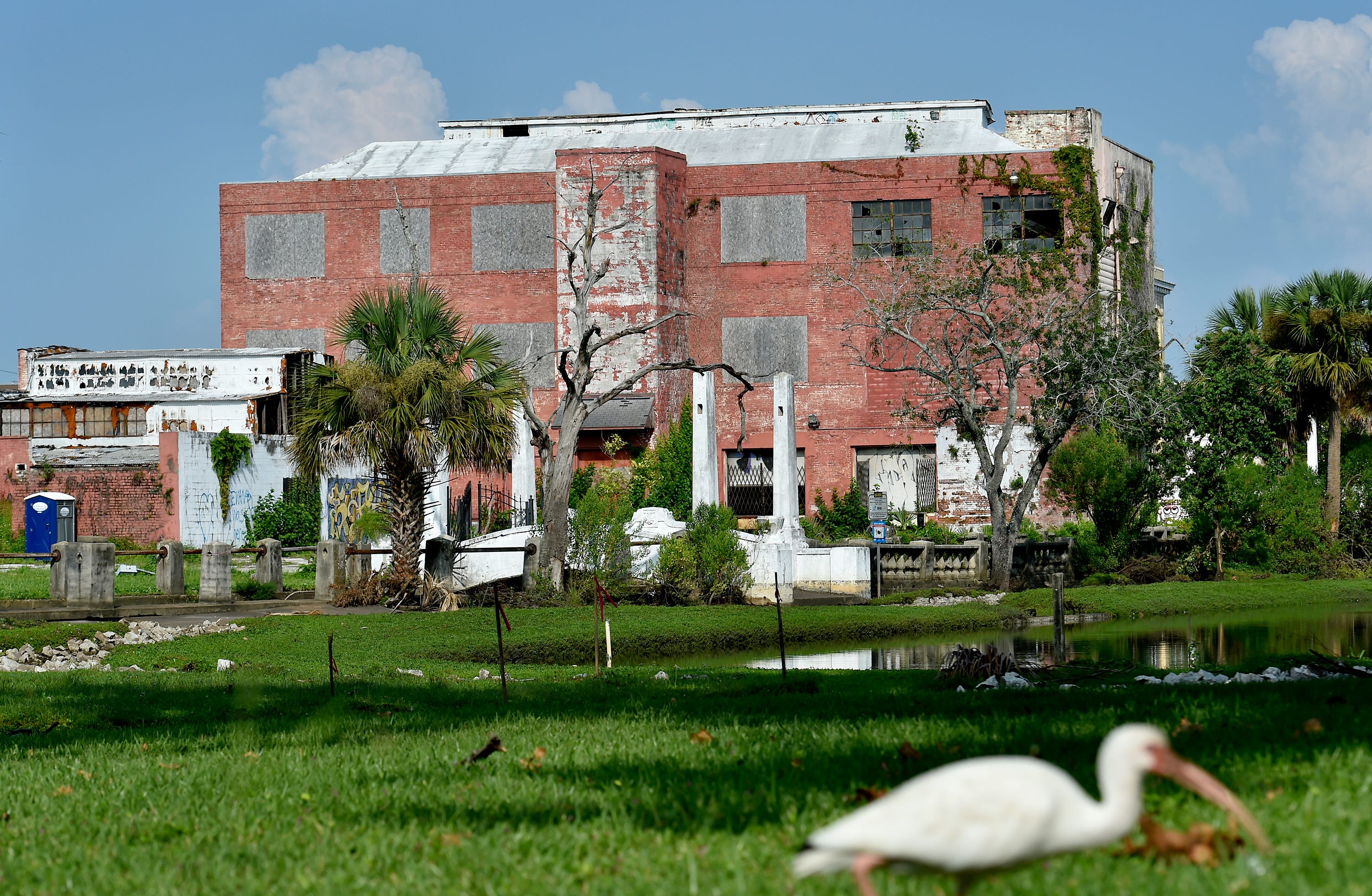 The back of the old Claude Nolan Cadillac dealership on Main Street that backs up to Springfield Park in Jacksonville's historic Springfield neighborhood in Jacksonville, Florida on August 2, 2024. (Photo by Bob Self/Florida Times-Union)