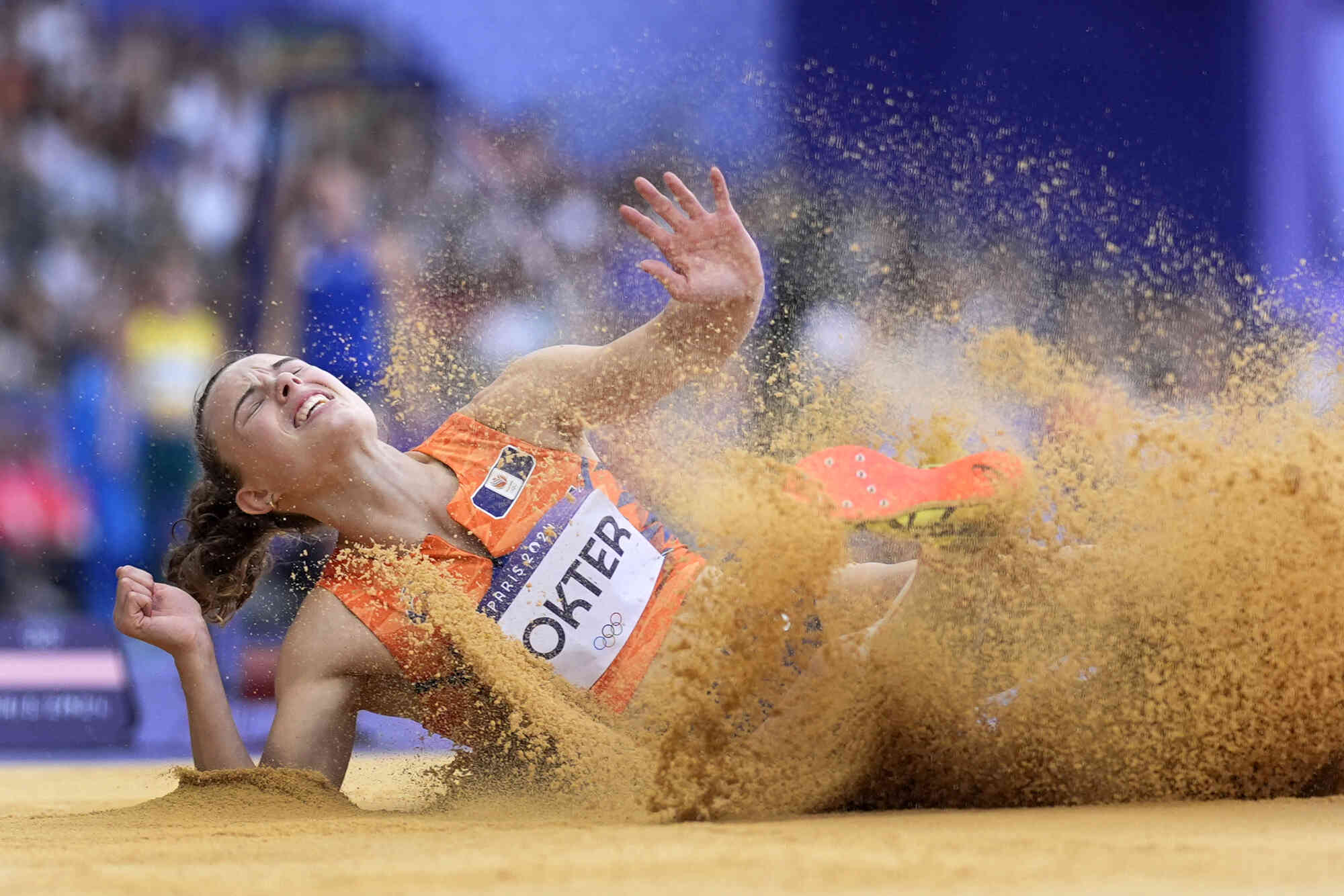 Sofie Dokter, of the Netherlands, competes in the women's heptathlon long jump at the 2024 Summer Olympics, Friday, August 9, 2024, in Saint-Denis, France. (Photo by Matthias Schrader/AP Photo)