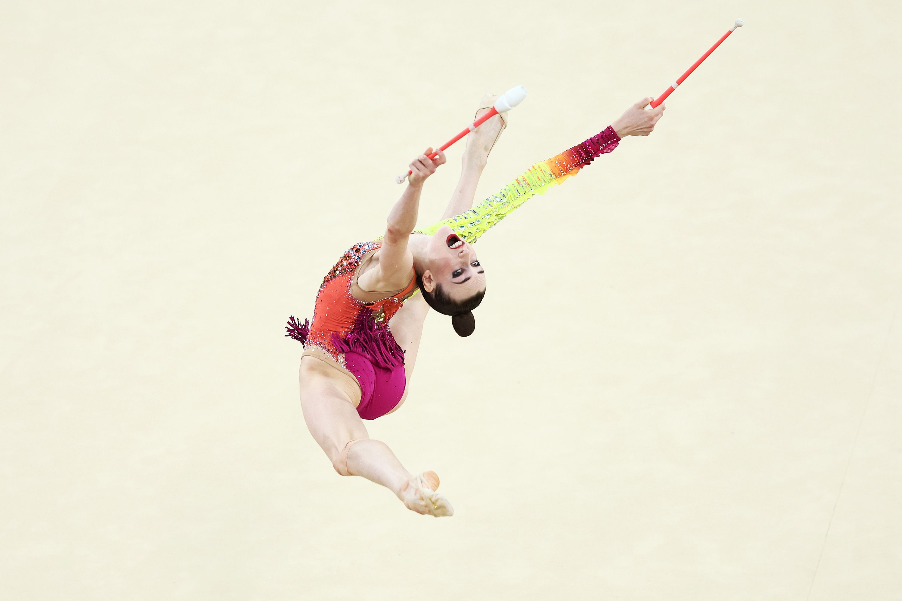 Darja Varfolomeev of Team Germany competes during the Rhythmic Gymnastics Individual All-Around Final on day fourteen of the Olympic Games Paris 2024 at Porte de La Chapelle Arena on August 09, 2024 in Paris, France. (Photo by Naomi Baker/Getty Images)
