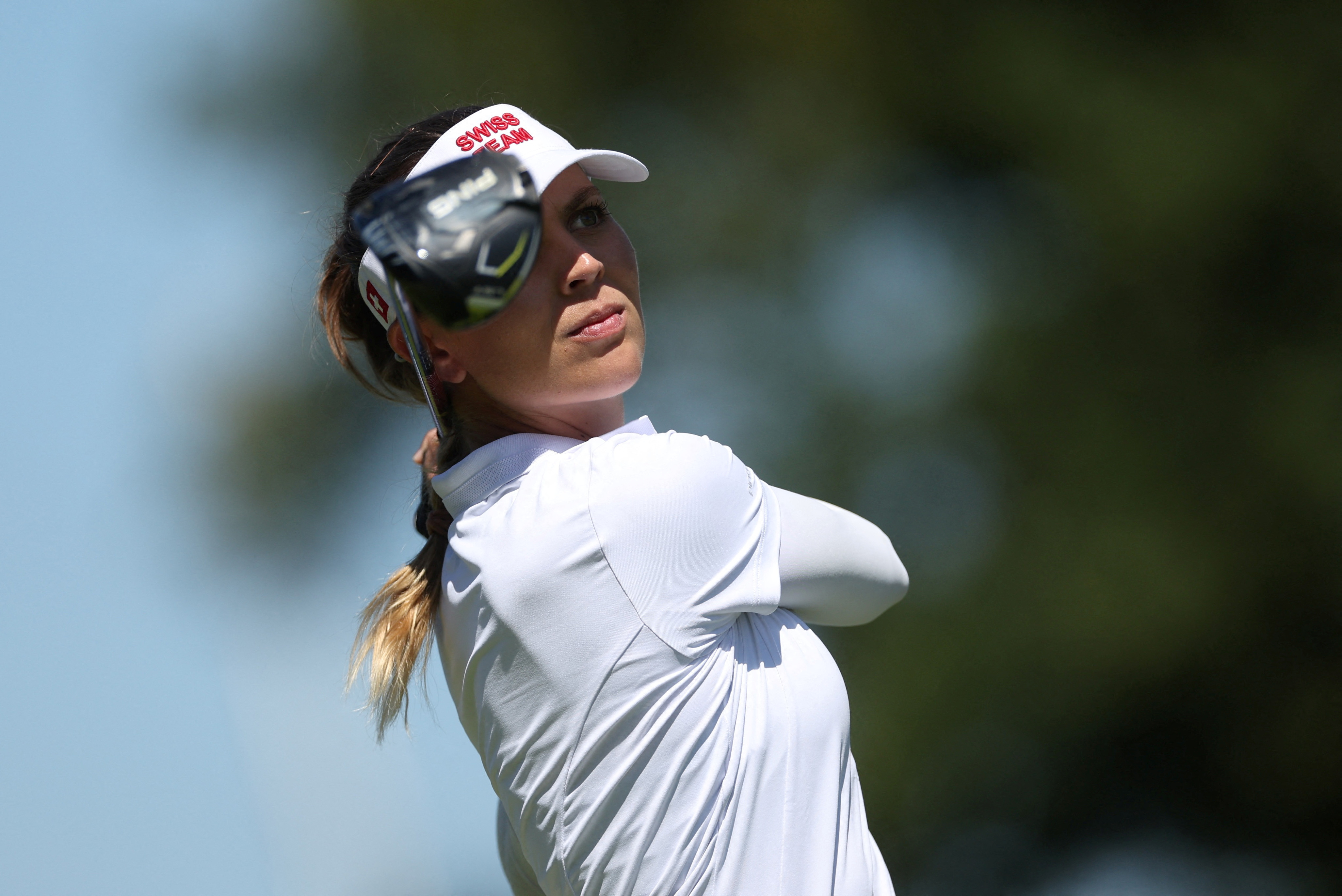 Switzerland's Morgane Metraux competes during round 4 of the women's golf individual stroke play of the Paris 2024 Olympic Games at Le Golf National in Guyancourt, south-west of Paris, on August 10, 2024. (Photo by Paul Childs/Reuters)
