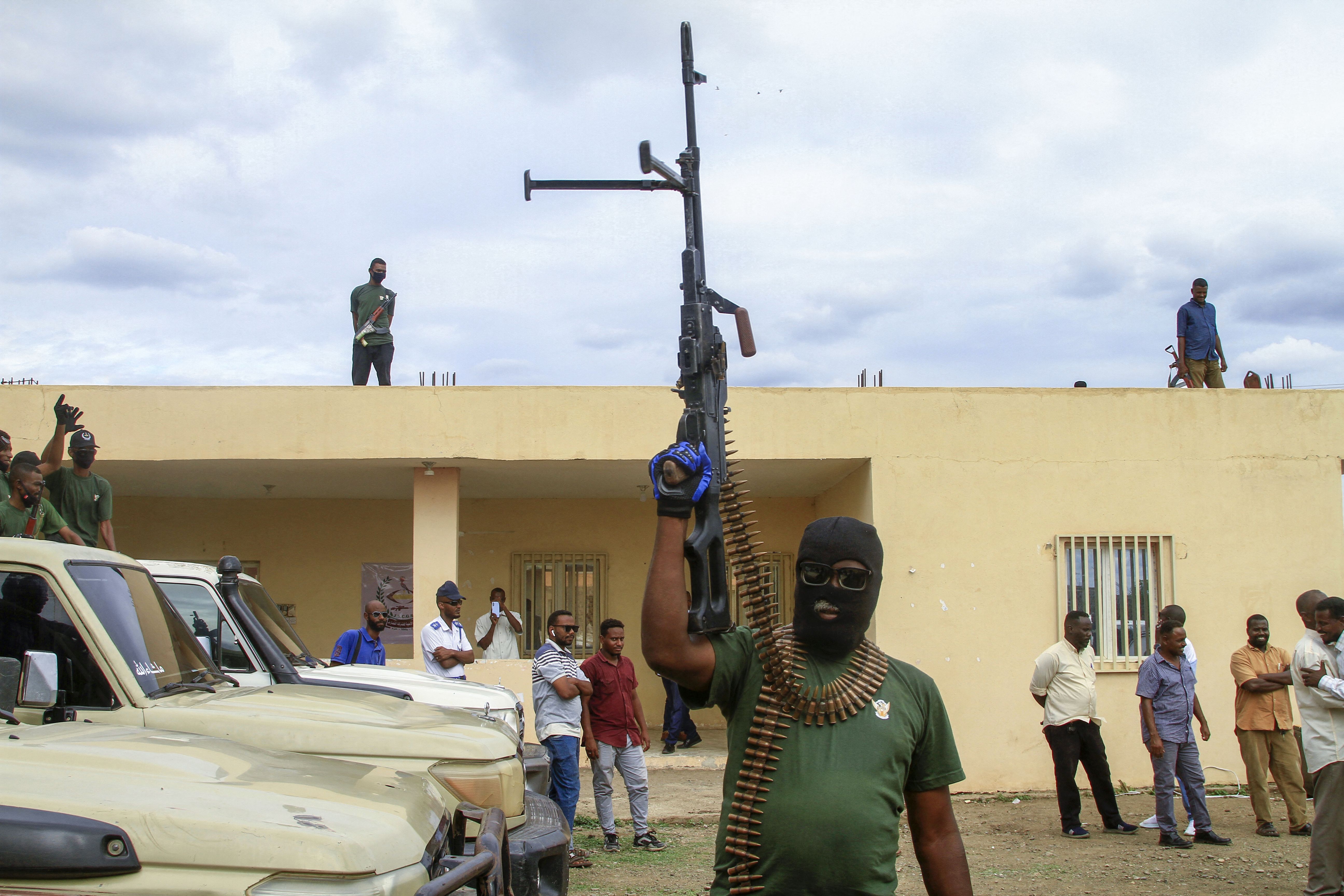 Members of a 'joint security cell' made up of various military and security services affiliated with Sudan's army, brandish rifles as they take part in a parade in Gedaref city in the east of the war-torn country, on July 28, 2024. Sudan has been gripped by war since April 2023, when fighting erupted between the army and the paramilitary Rapid Support Forces, killing tens of thousands, displacing millions and triggering one of the world's worst humanitarian crises. (Photo by AFP Photo)