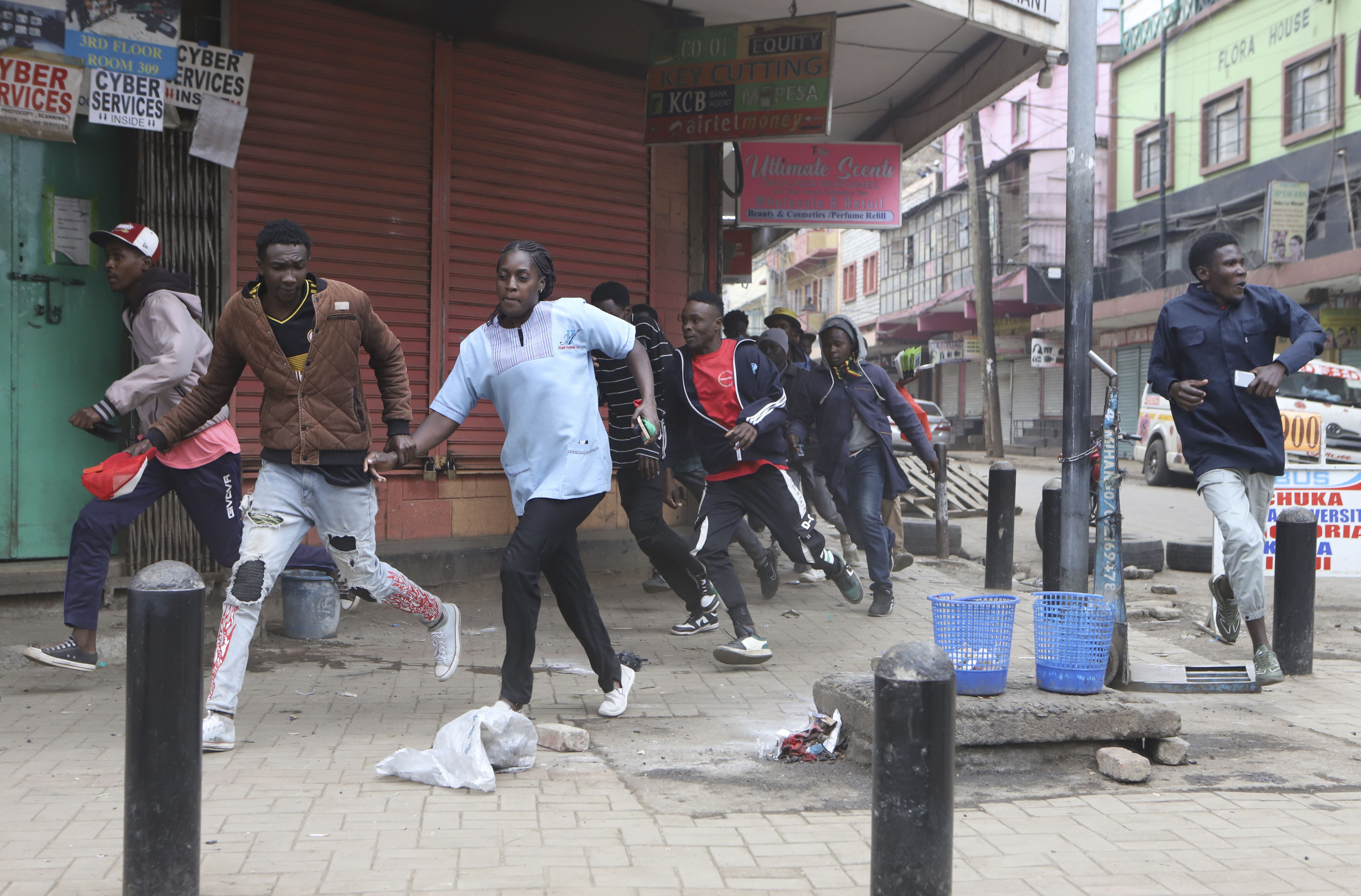 Protestors run during a demonstration rally against hunger in Nairobi, Kenya, Thursday August 8, 2024. (Photo by Andrew Kasuku/AP Photo)