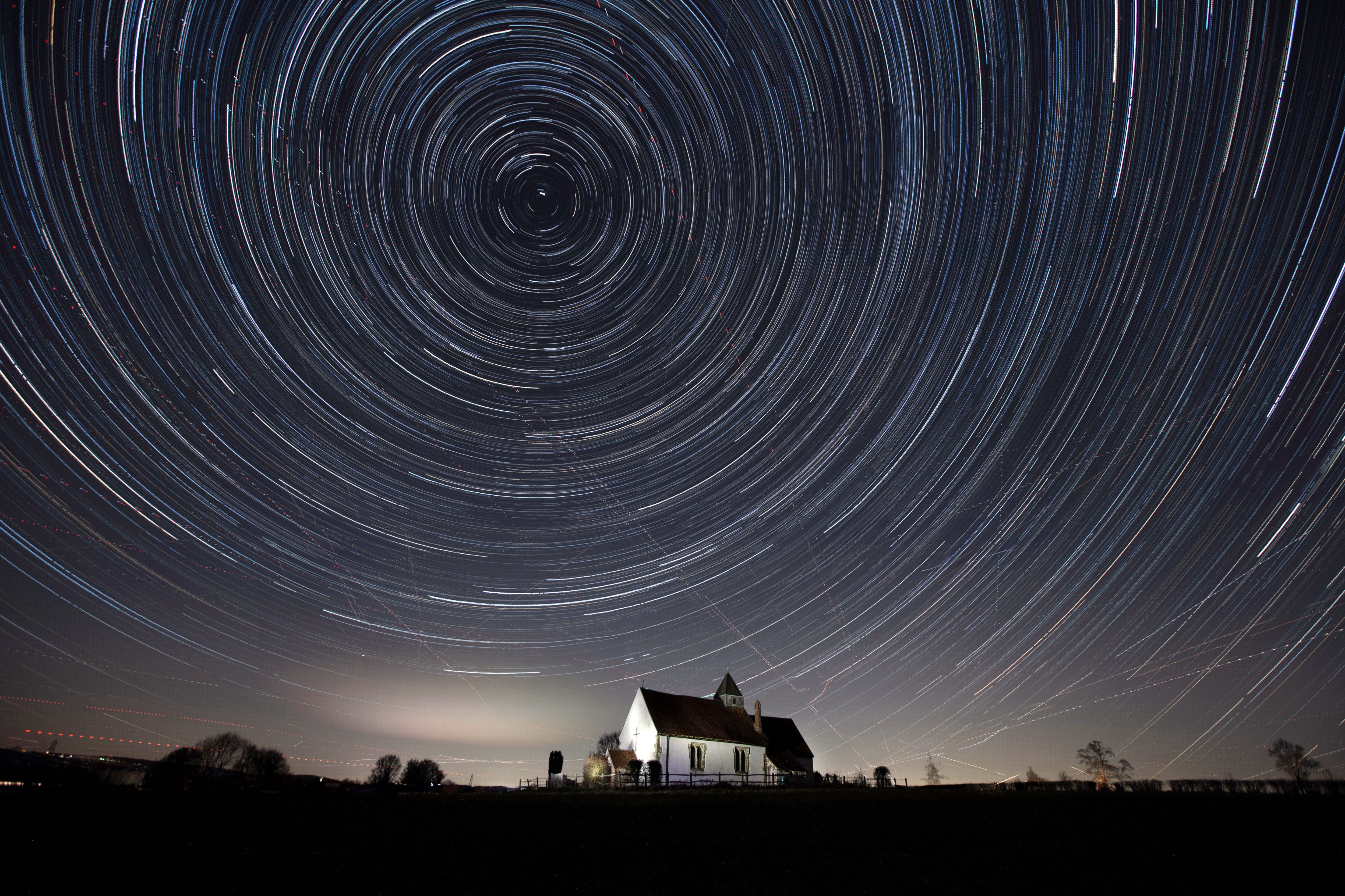This photograph of the freezing night sky “swirling around the North Star” over St Hubert’s Church in Idsworth, Hampshire, UK was created over two and a half hours using 250 images in the first decade of January 2024. (Photo by Chris Gorman/Big Ladder)
