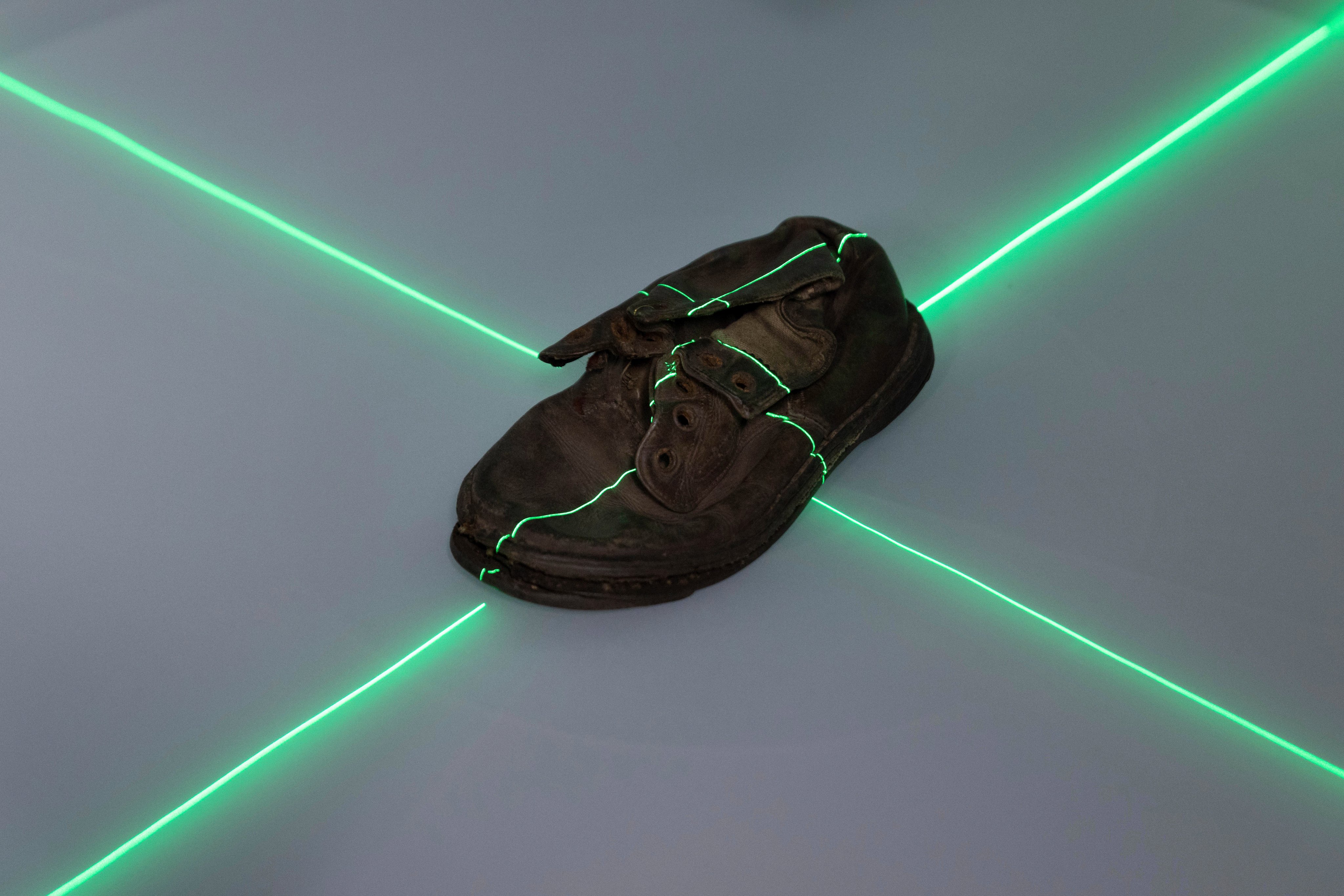 A shoe that belonged to a child victim of the former Nazi German death camp Auschwitz-Birkenau is scanned at the conservation laboratory on the grounds of the camp in Oswiecim, Poland, Wednesday, May 10, 2023. Most of the victims were Jews killed in dictator Adolf Hitler's attempt to exterminate the Jews of Europe. (Photo by Michal Dyjuk/AP Photo)