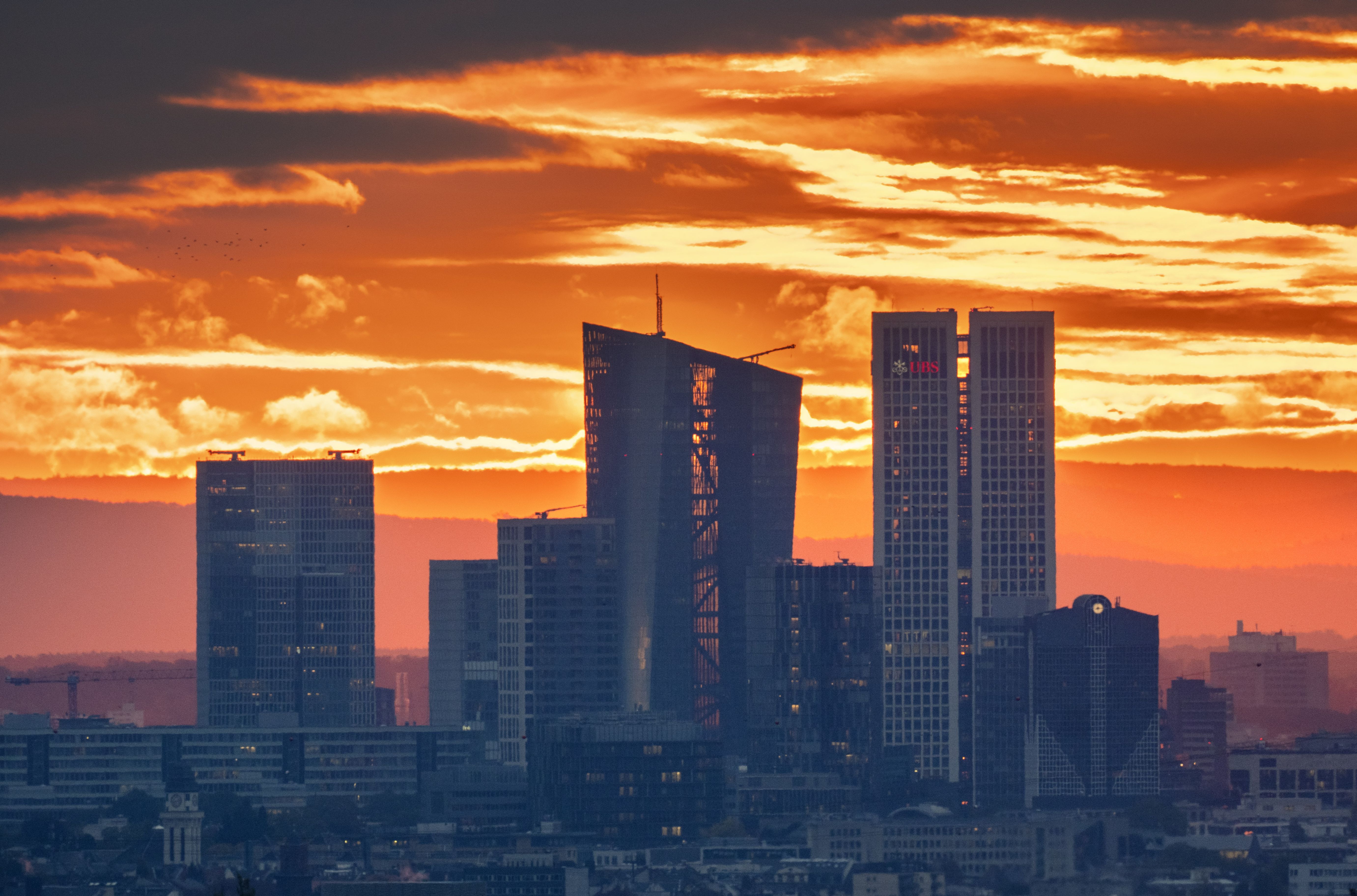 The European Central Bank, centre, is pictured before sunrise in Frankfurt, Germany, Thursday, October 26, 2023. (Photo by Michael Probst/AP Photo)