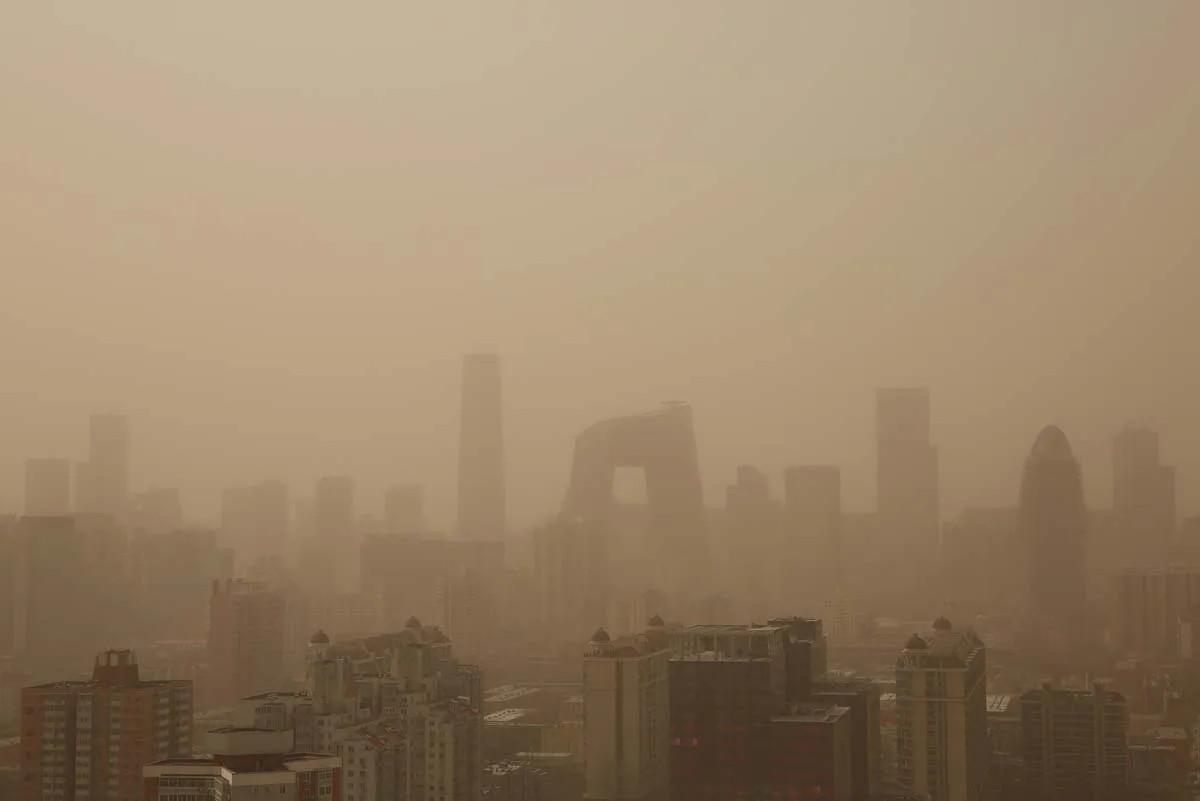 BEIJING, CHINA - FEBRUARY 28: A general view of the skyscrapers in the sandstorm on February 28, 2013 in Beijing, China. Beijing was hit by its first sandstorm of the year while its air quality reached dangerous level on Thursday. (Photo by Feng Li/Getty Images)
