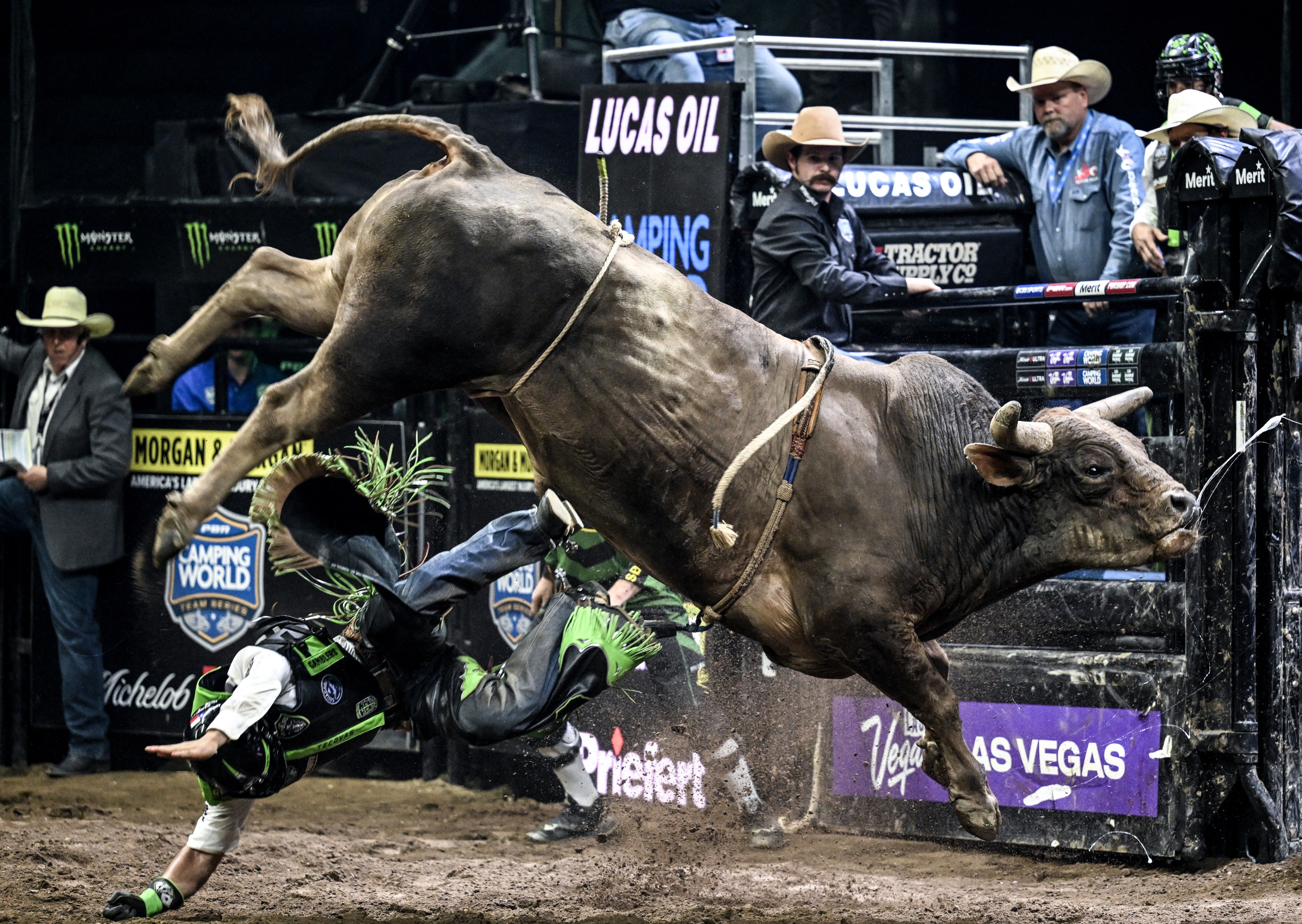 Professional bull riders compete during the PBR Unleash the Beast bull riding event at Barclays Center in New York, United States on August 11, 2024. (Photo by Fatih Aktas/Anadolu via Getty Images)