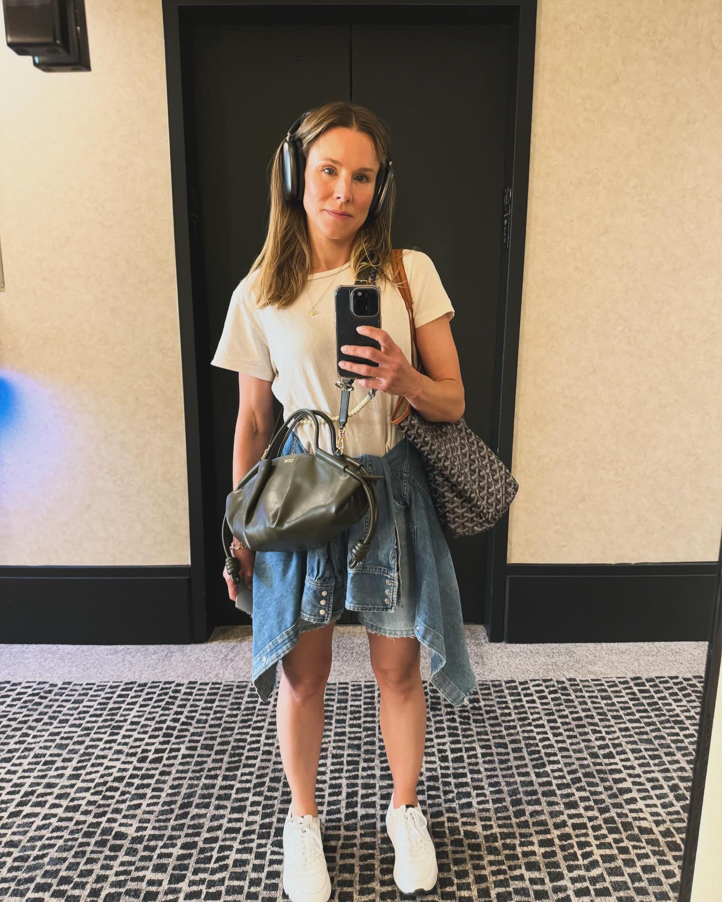Makeup-free American actress Kristen Bell early August 2024 snaps a selfie from a solo trip. (Photo by kristenanniebell/Instagram)
